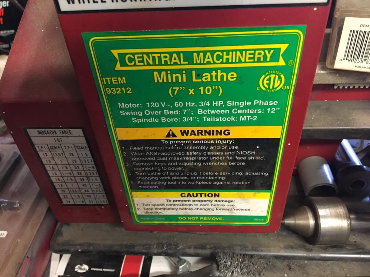 7”x 10” Central Machinery Mini Lathe