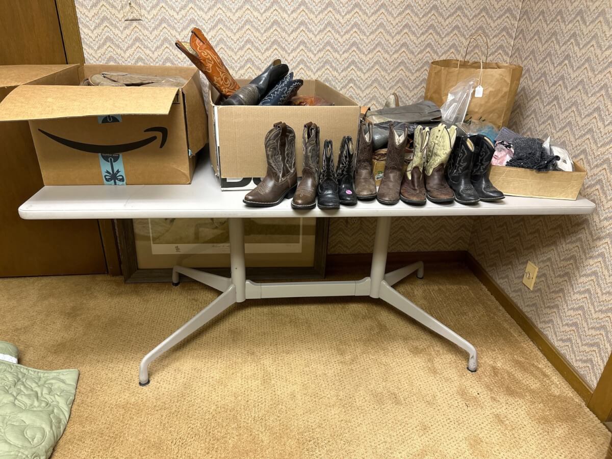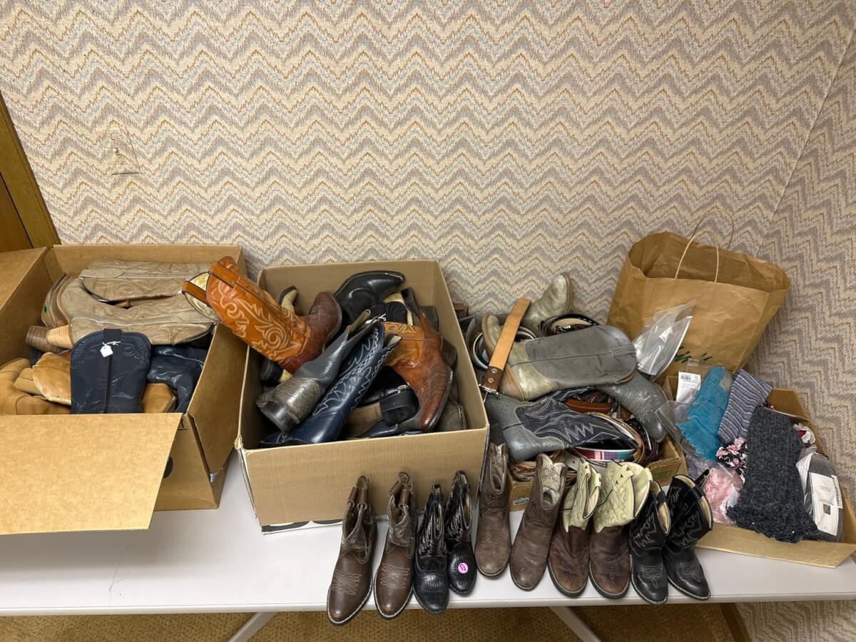 | 217 | 20+ Pairs of Boots, Box of Belts, Crafting Materials |