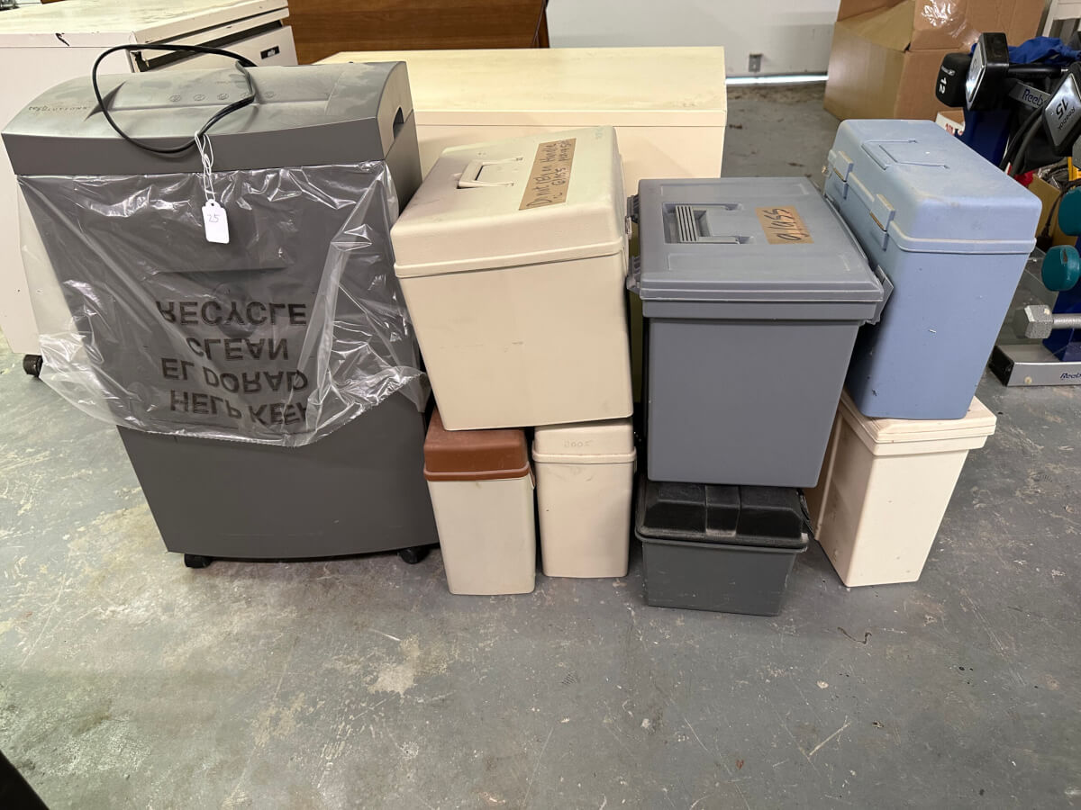 | 25 | Misc Plastic File Bins, Paper Shredder |