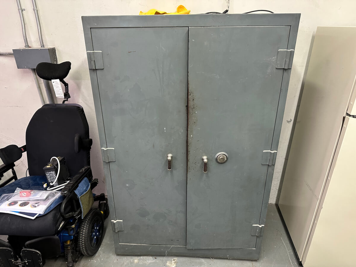 | 90 | Small Safe (Locked) On Castors (34″ tall, 24″ deep, 22″ wide) |