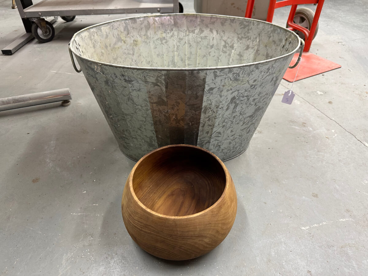 | 168 | Galvanized Tub, Wooden Bowl |
