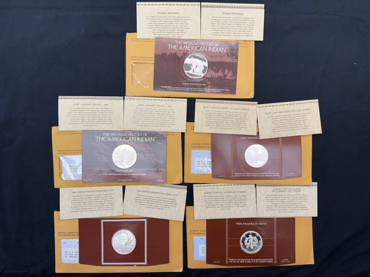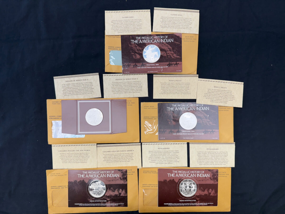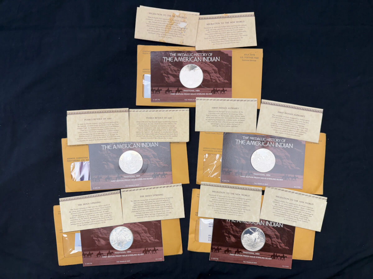 | 13 | (5) American Indian sterling silver coins: Migration to the new world, Pueblo revolt of 1680, migration to the new world, Sioux uprising |