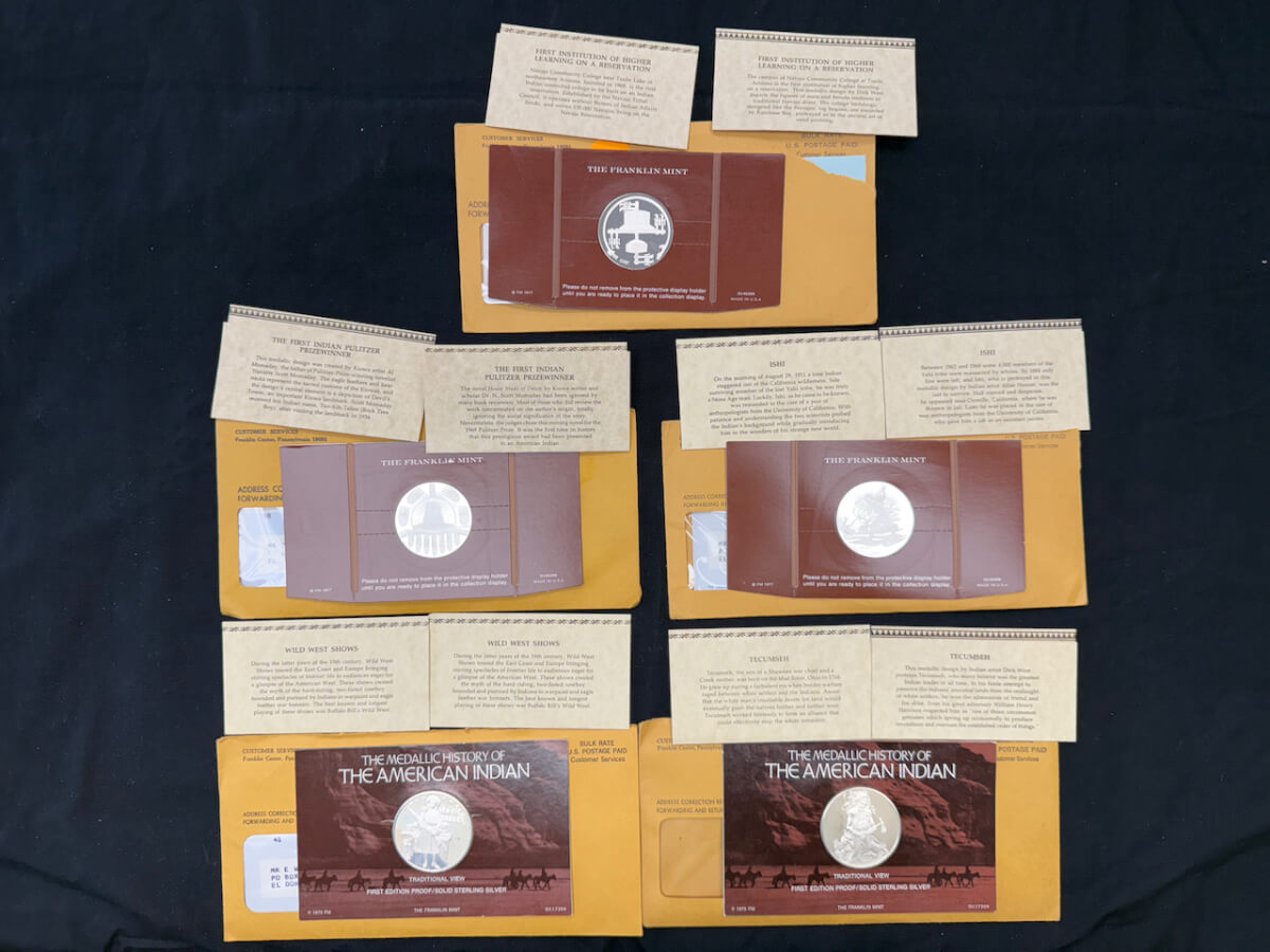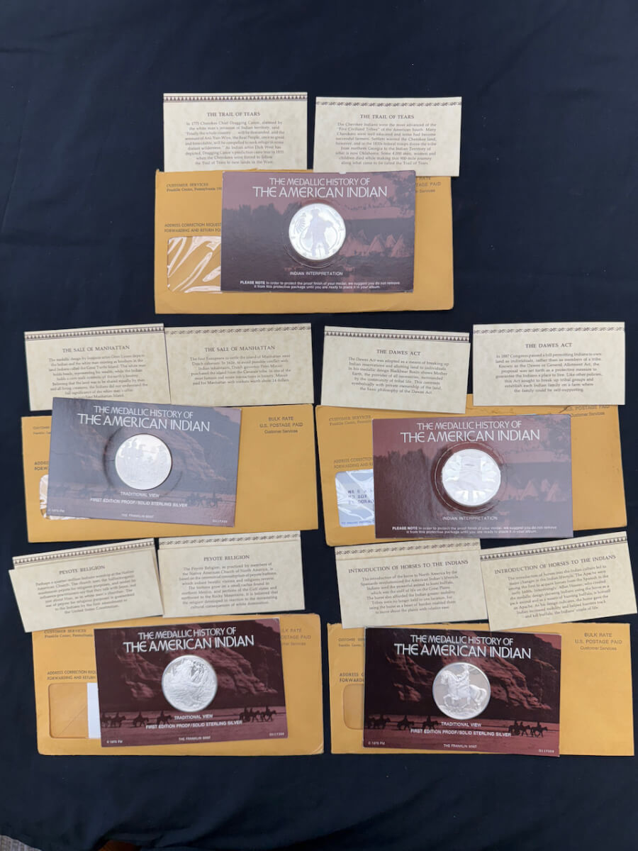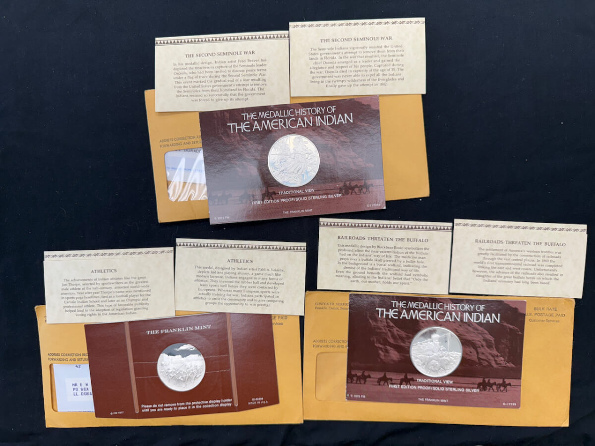 | 13 | (5) American Indian sterling silver coins: Migration to the new world, Pueblo revolt of 1680, migration to the new world, Sioux uprising |