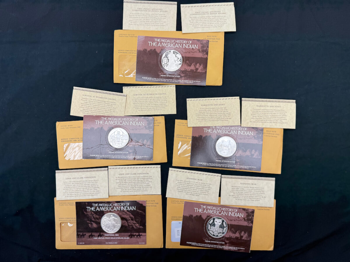 | 14 | (5) American Indian sterling silver coins: Standing Bear, Lewis and Clark expedition, survival at Plymouth, Marquette and Joliet, first Indian appointed |