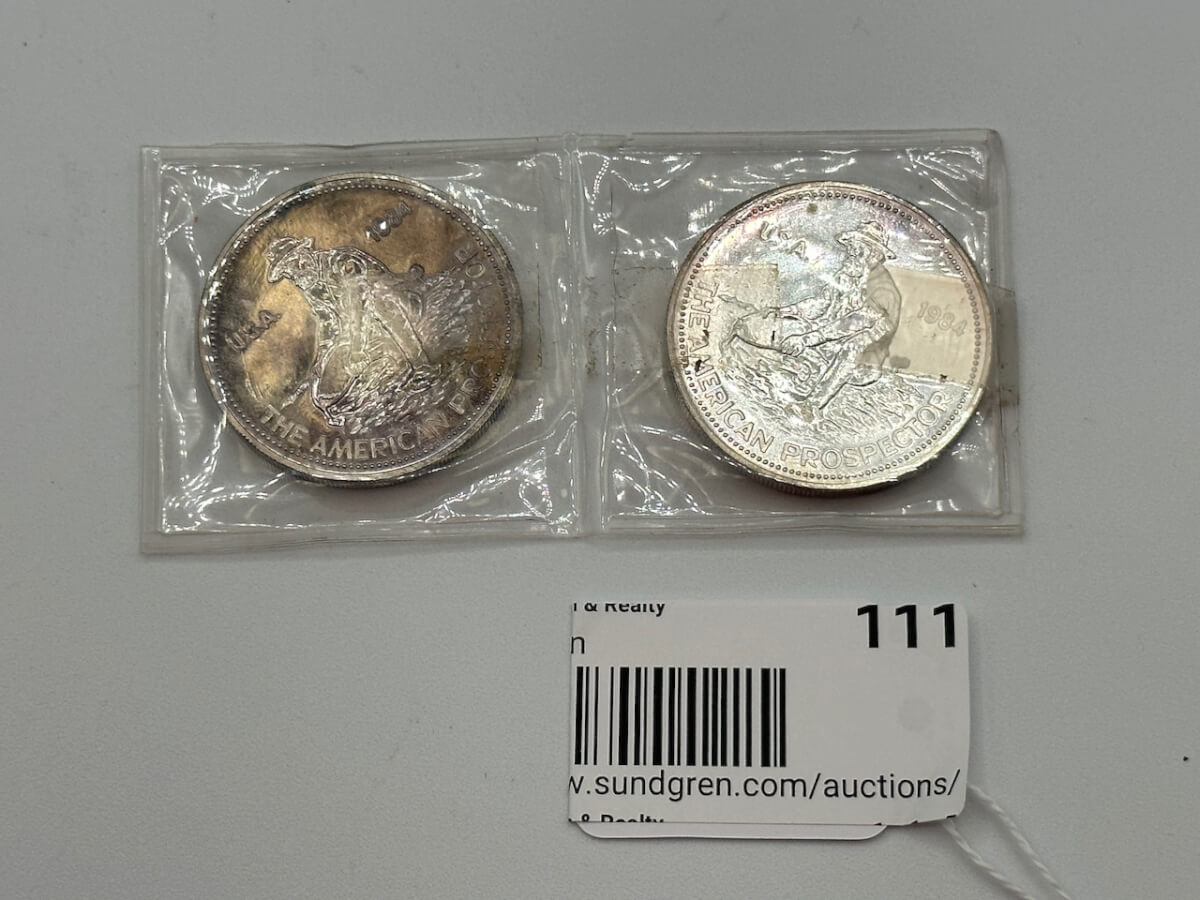 111 (2) 1984 U.S.A. The American Prospector, Engelhard, One Troy Ounce .999 Fine Silver