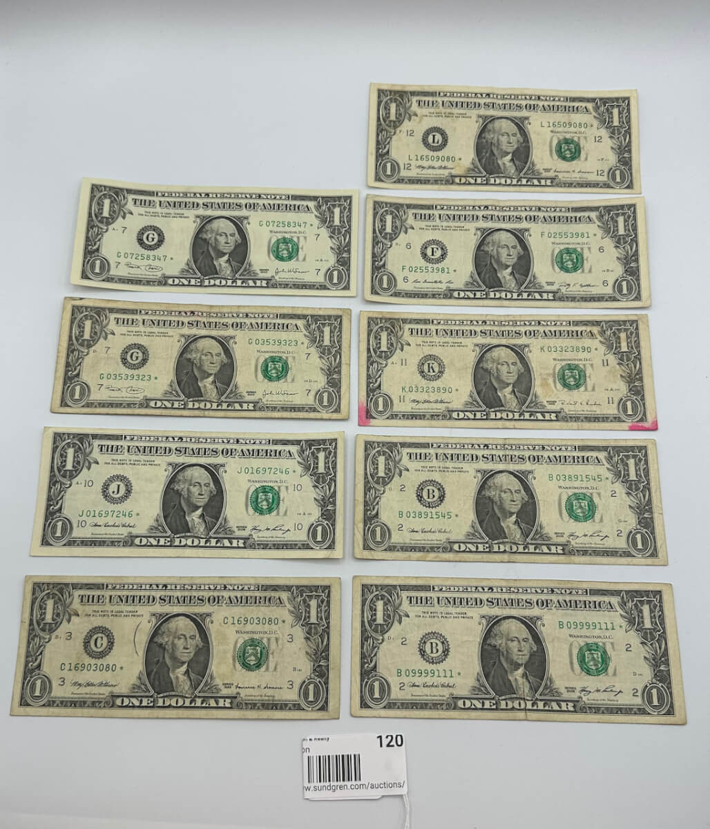 120 (9) $1 bill Star note’s