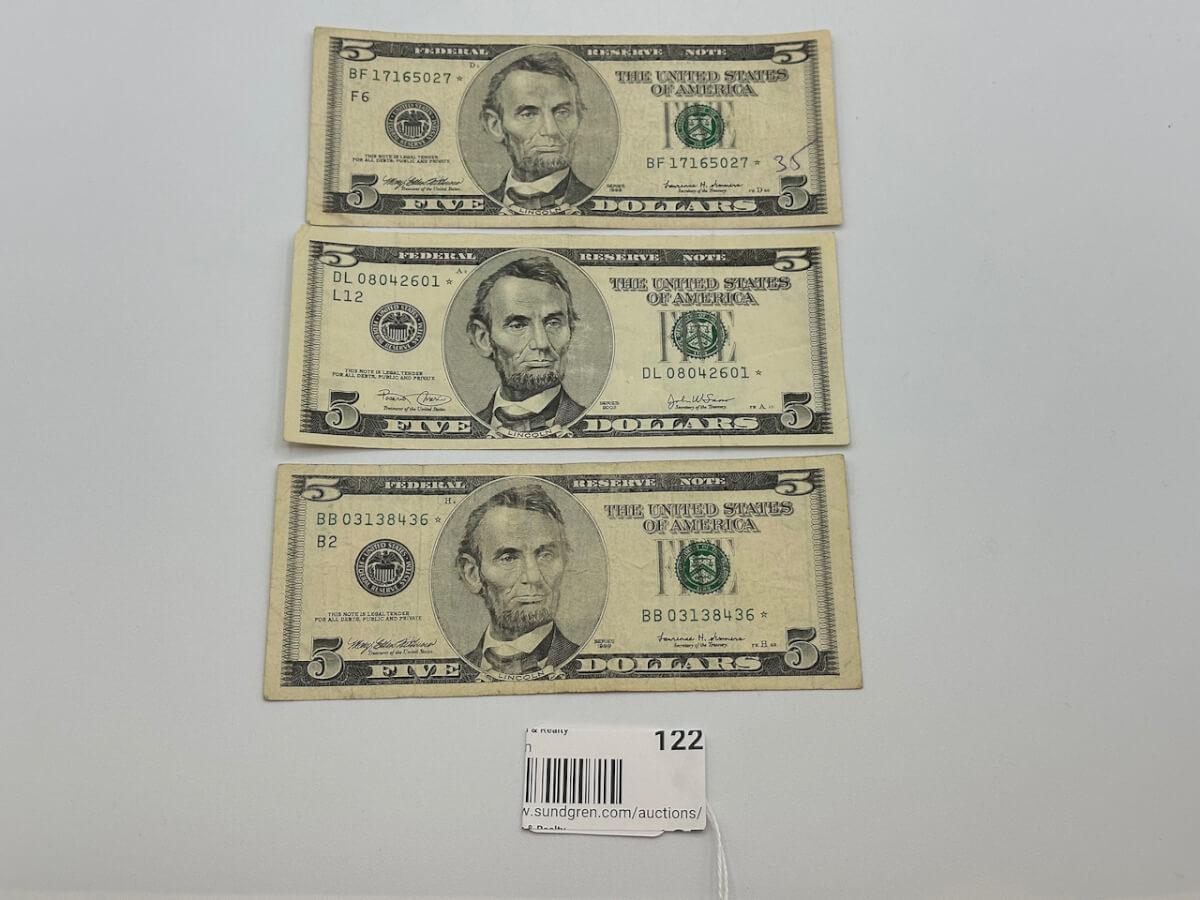 122 (3) $5 bill Star note’s