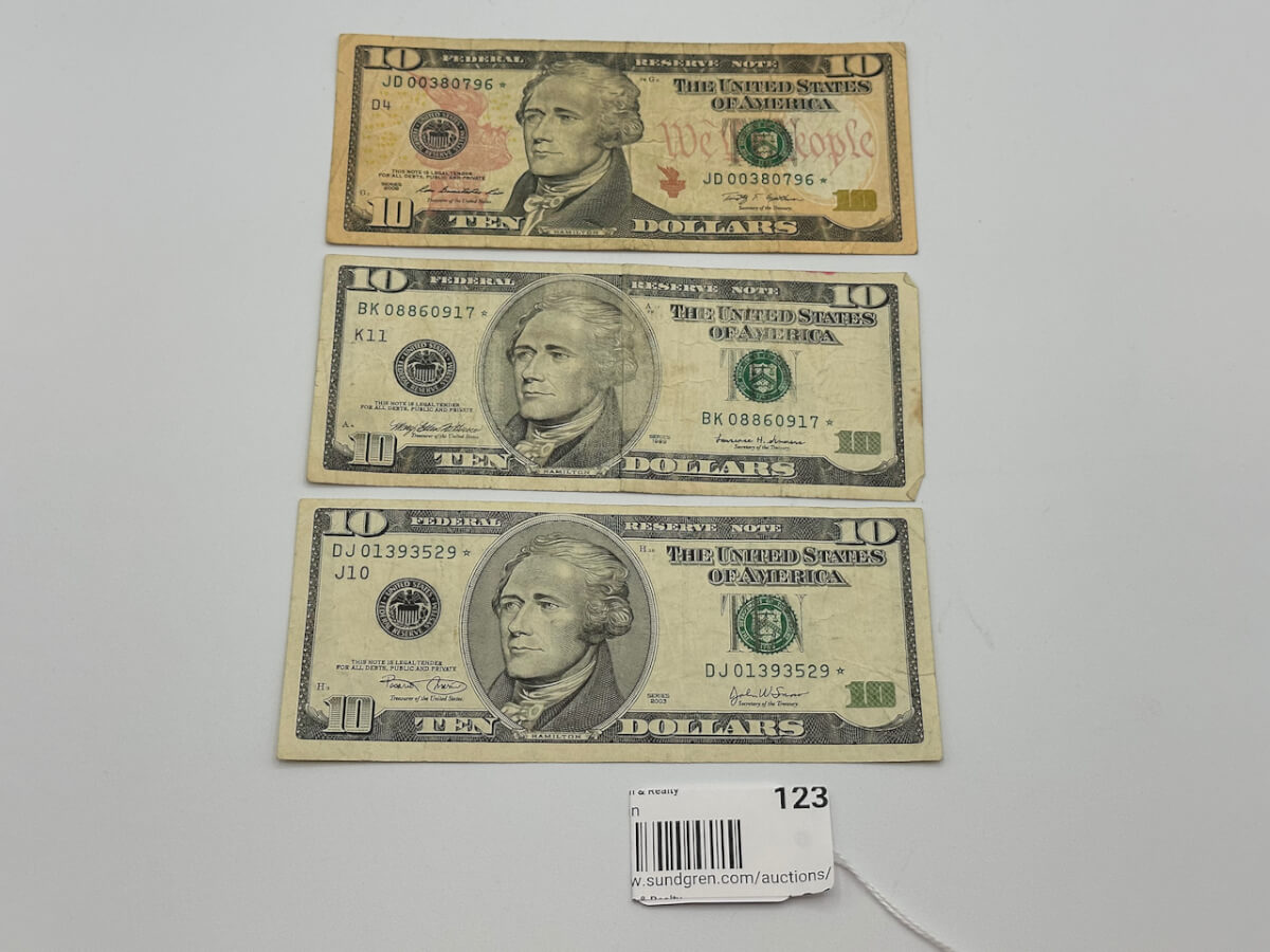123 (3) $10 bill Star note’s