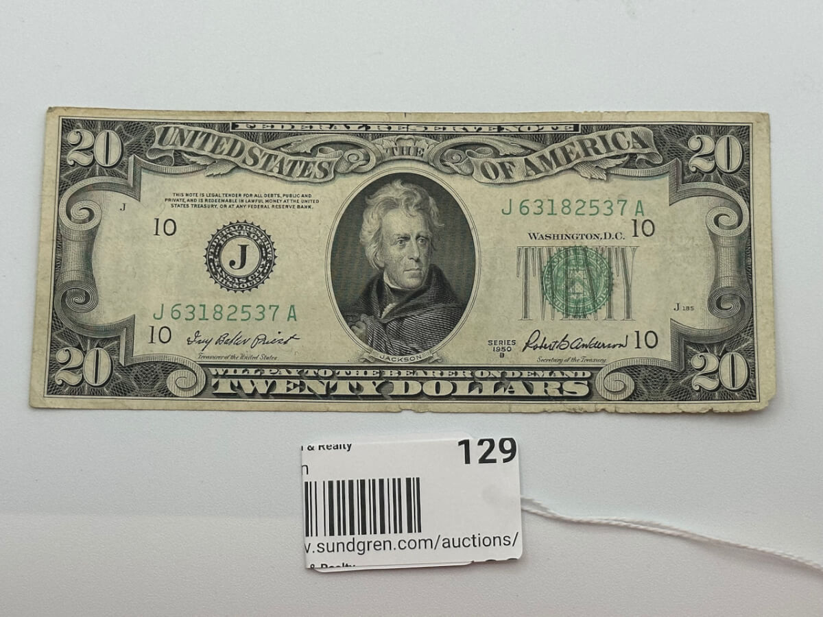 129 1950 $20 bill, J63182537A