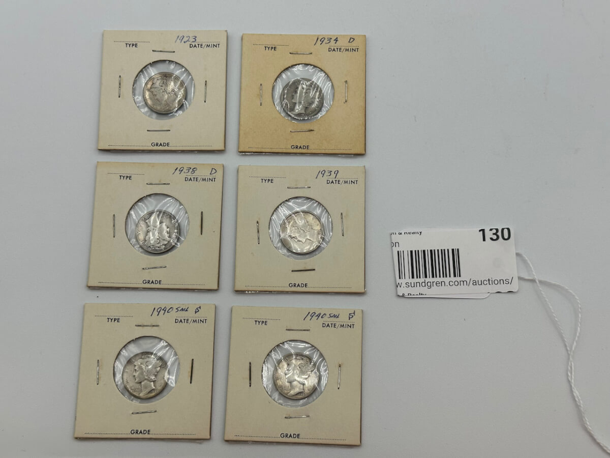 130 (6) 1923, 1934, 1938, 1939, 2-1940 Mercury dimes