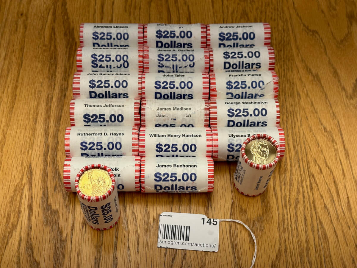 145 (19) rolls of Uncirculated Presidential Golden dollars