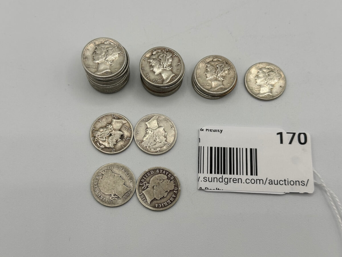 170 (2) 1906, 1916 Barber dimes, 1942-1945 Mecury dimes