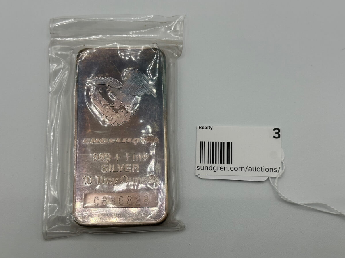 3 Silver Bar-Engelhard, 999+ Fine Silver 10 Troy Ounces, C836828