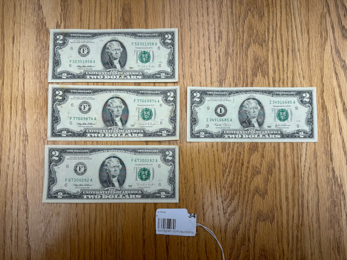 34 (3) 1995 & (1) 2003 $2 Bills