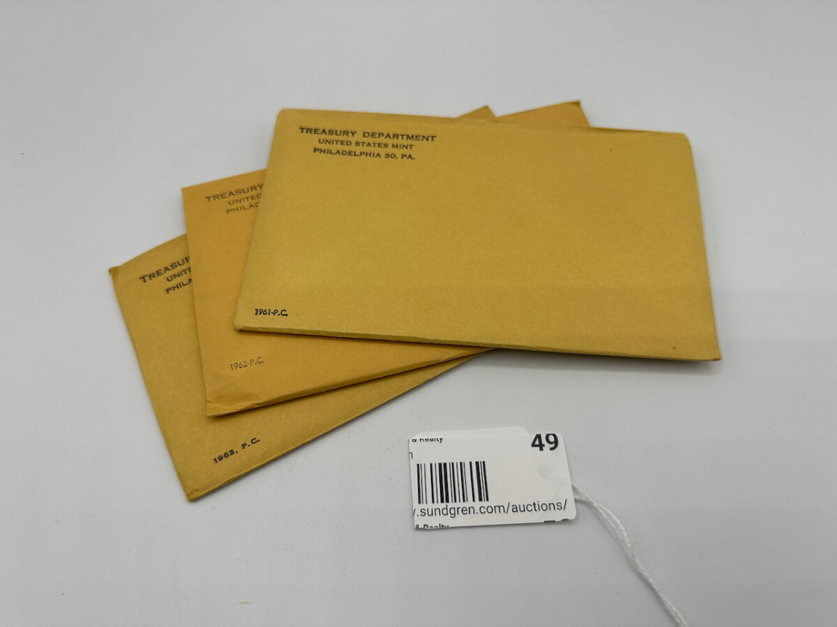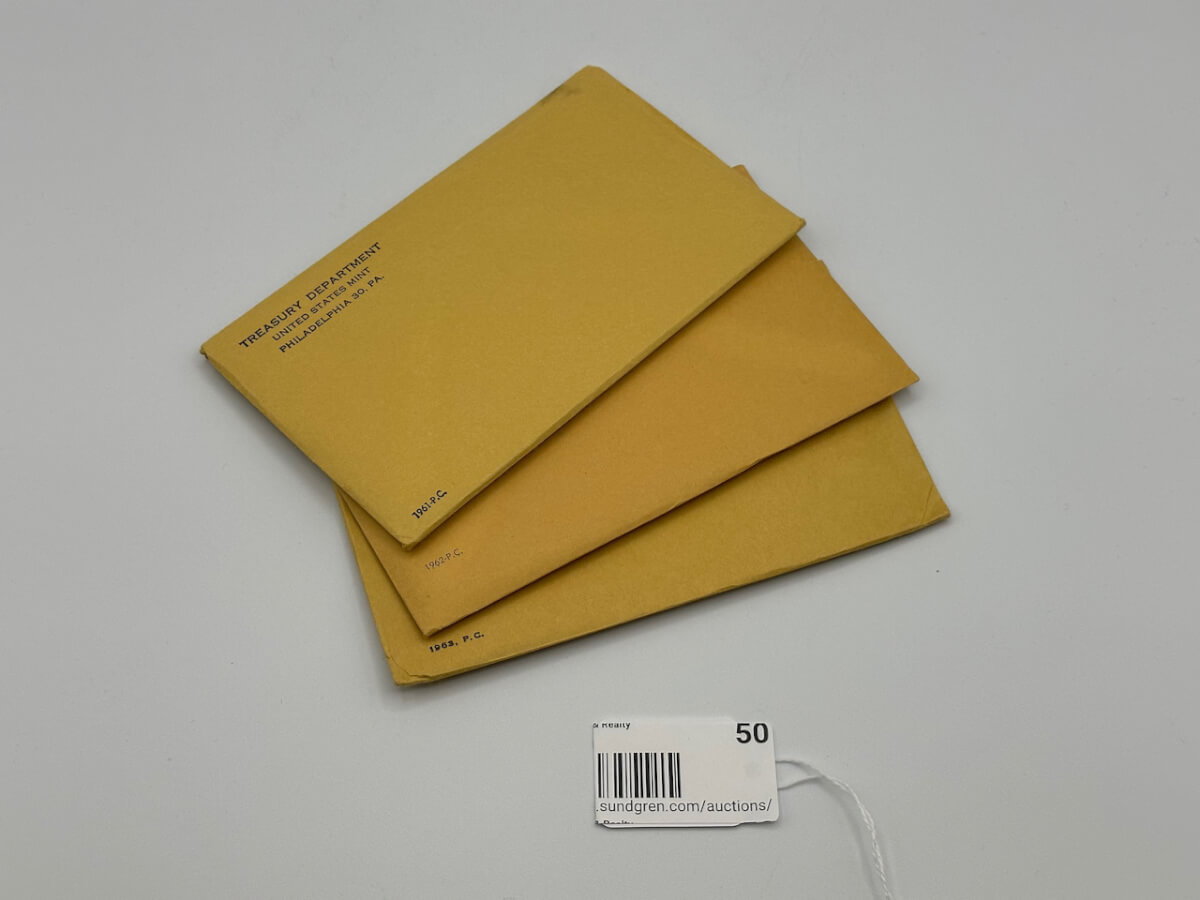 49 1961-1963, P.C. Uncirculated Coin Sets, unopened envelopes