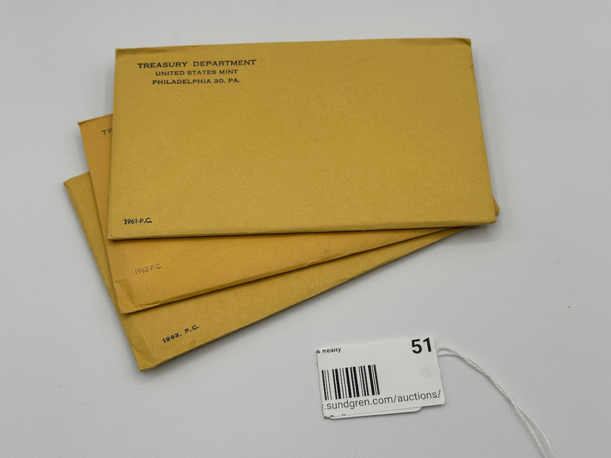 51 1961-1963, P.C. Uncirculated Coin Sets, unopened envelopes