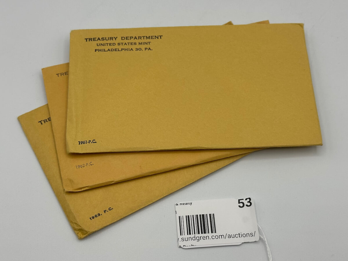 53 1961-1963, P.C. Uncirculated Coin Sets, unopened envelopes