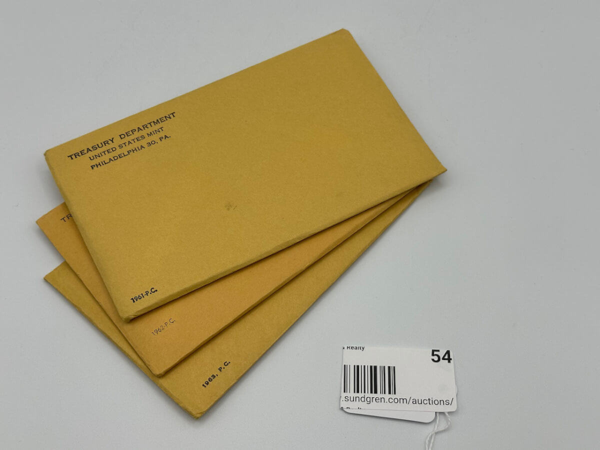 54 1961-1963, P.C. Uncirculated Coin Sets, unopened envelopes