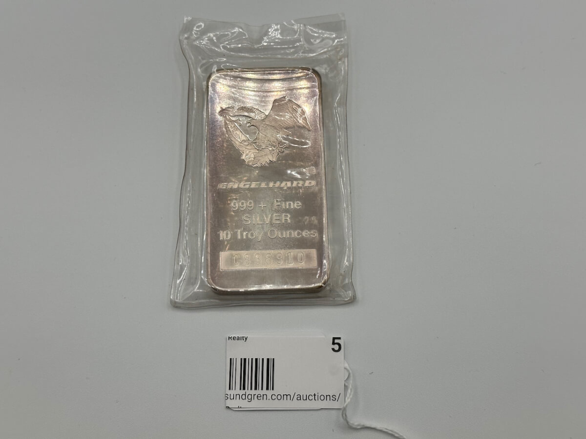 5 Silver Bar-Engelhard, 999+ Fine Silver 10 Troy Ounces, C836910