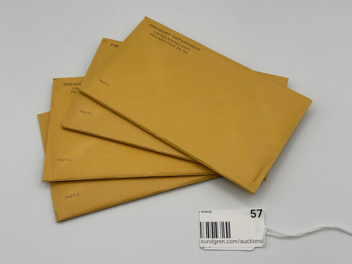 57 (4) 1962, P.C. Uncirculated Coin sets, 4 unopened envelopes