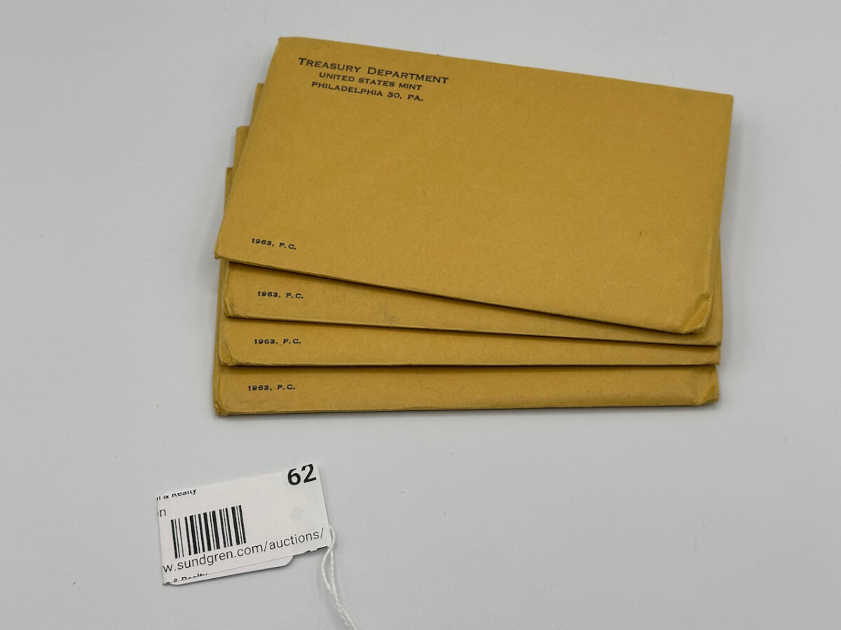 62 (4) 1963, P.C. Uncirculated Coin sets, 4 unopened envelopes