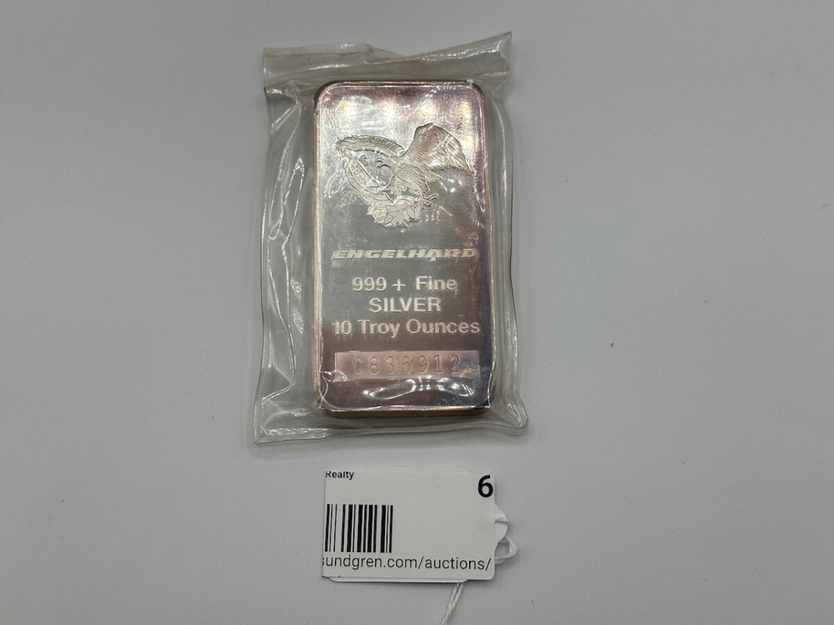 6 Silver Bar-Engelhard, 999+ Fine Silver 10 Troy Ounces, C836912