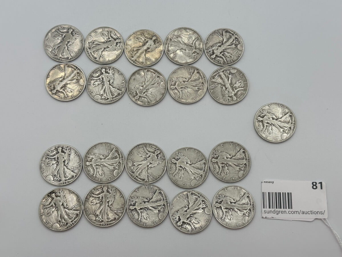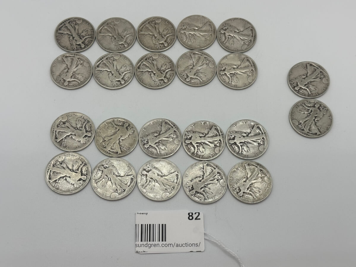82 (22) 1917-1918, 1920, 1927-1929, 1933-1937 Walking Liberty Silver Half Dollar