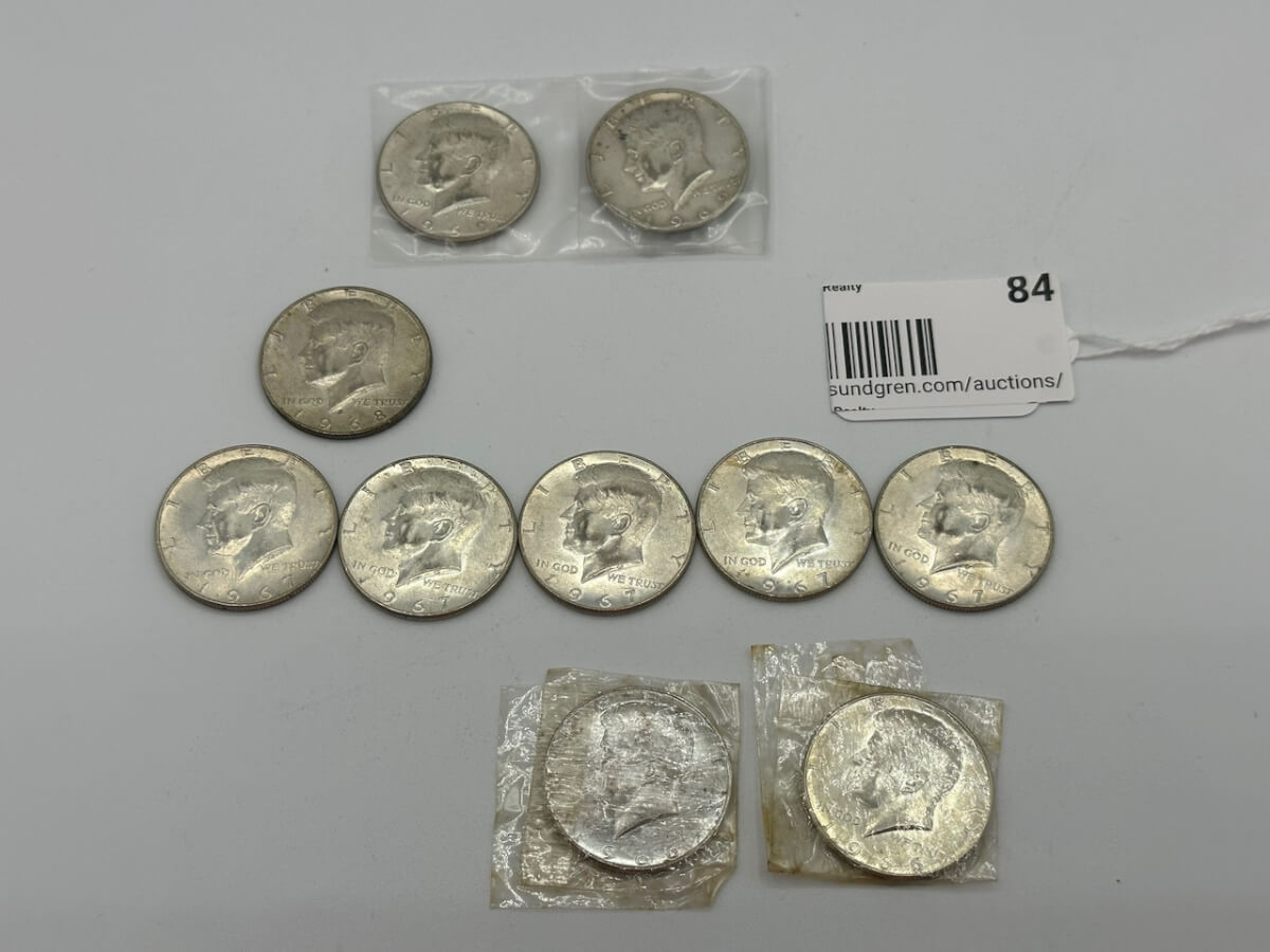 84 (10) 2-1966, 5-1967, 1-1968, 2-1969 Kennedy half dollars