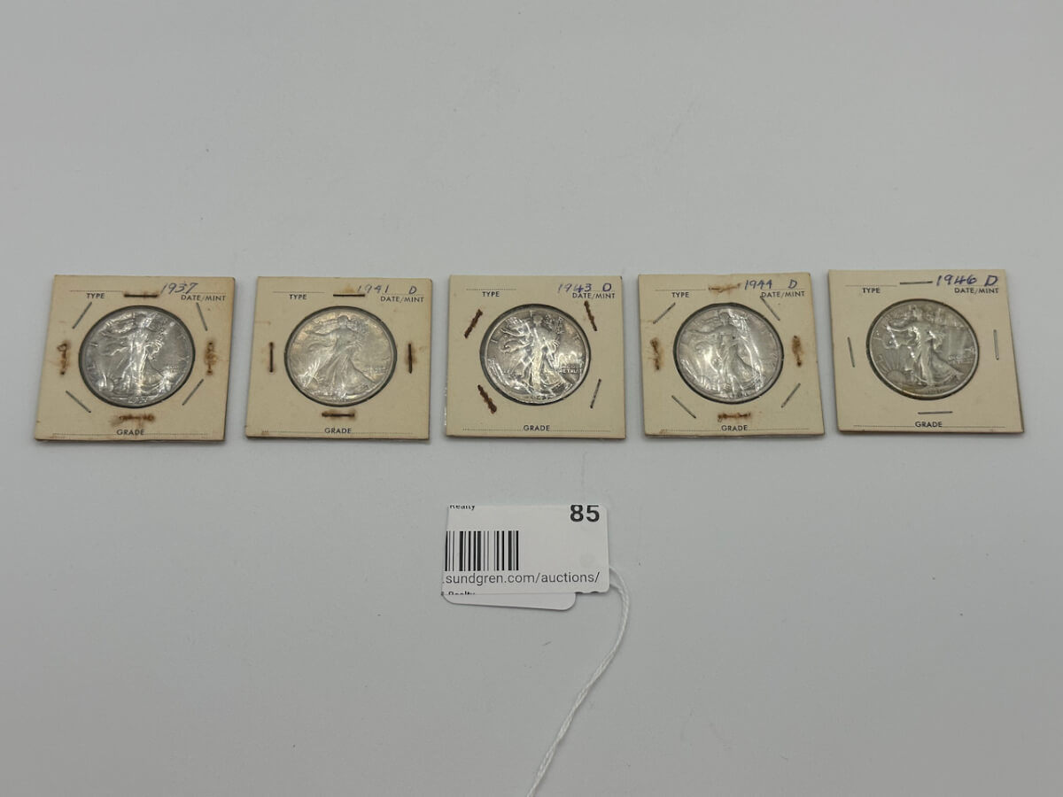 85 (5) 1937, 1941, 1943, 1944, 1946 Walking Liberty half dollars