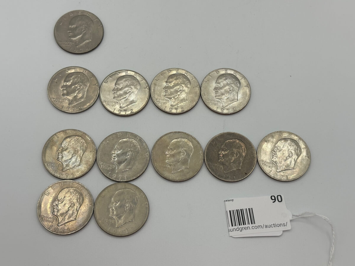90 (12) 7-1971, 4-1972, 1-1974 Silver Clad Eisenhower dollars