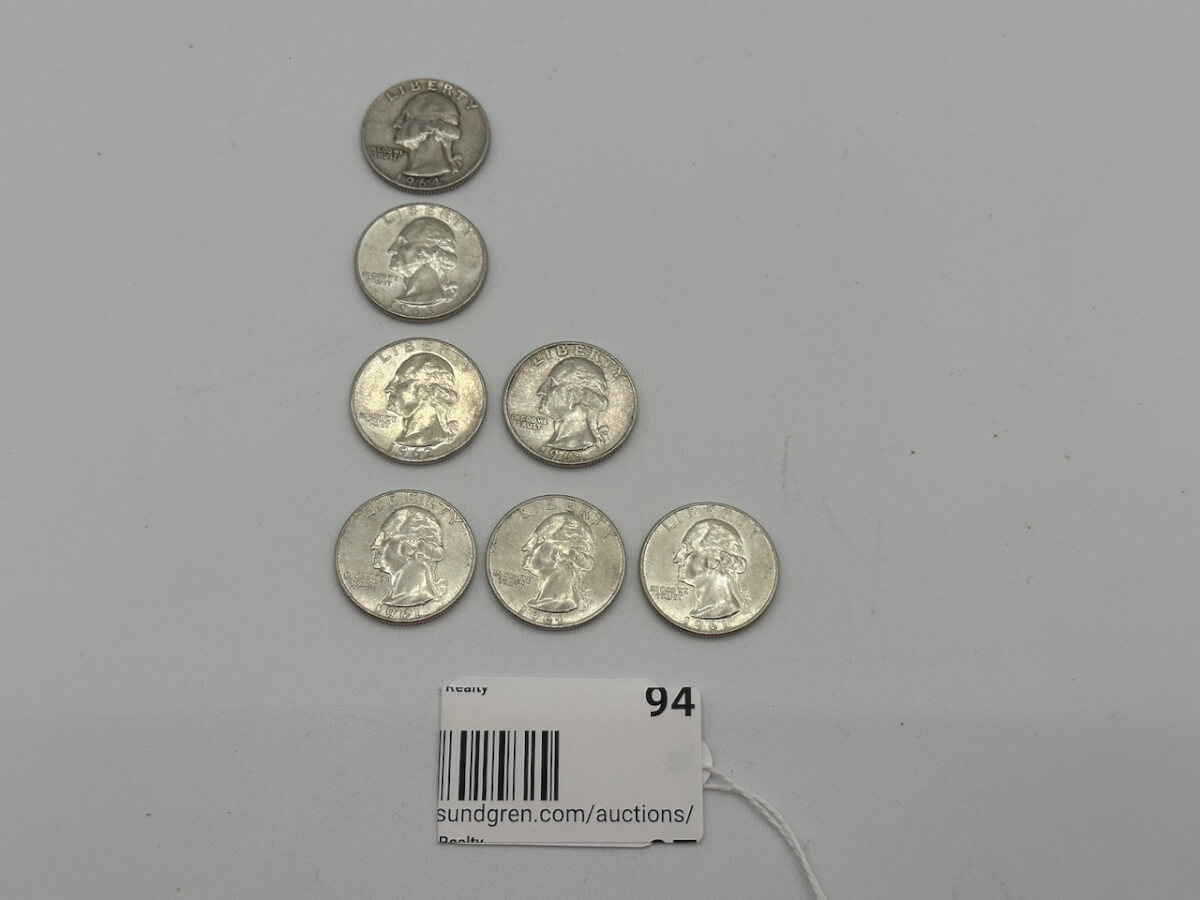 94 (7) 3-1961, 2-1962, 1-1963, 1-1964 silver quarters
