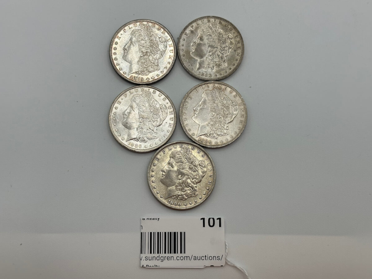 101 (5) 1879, 1883, 1886, 1888, 1890 Morgan silver dollars