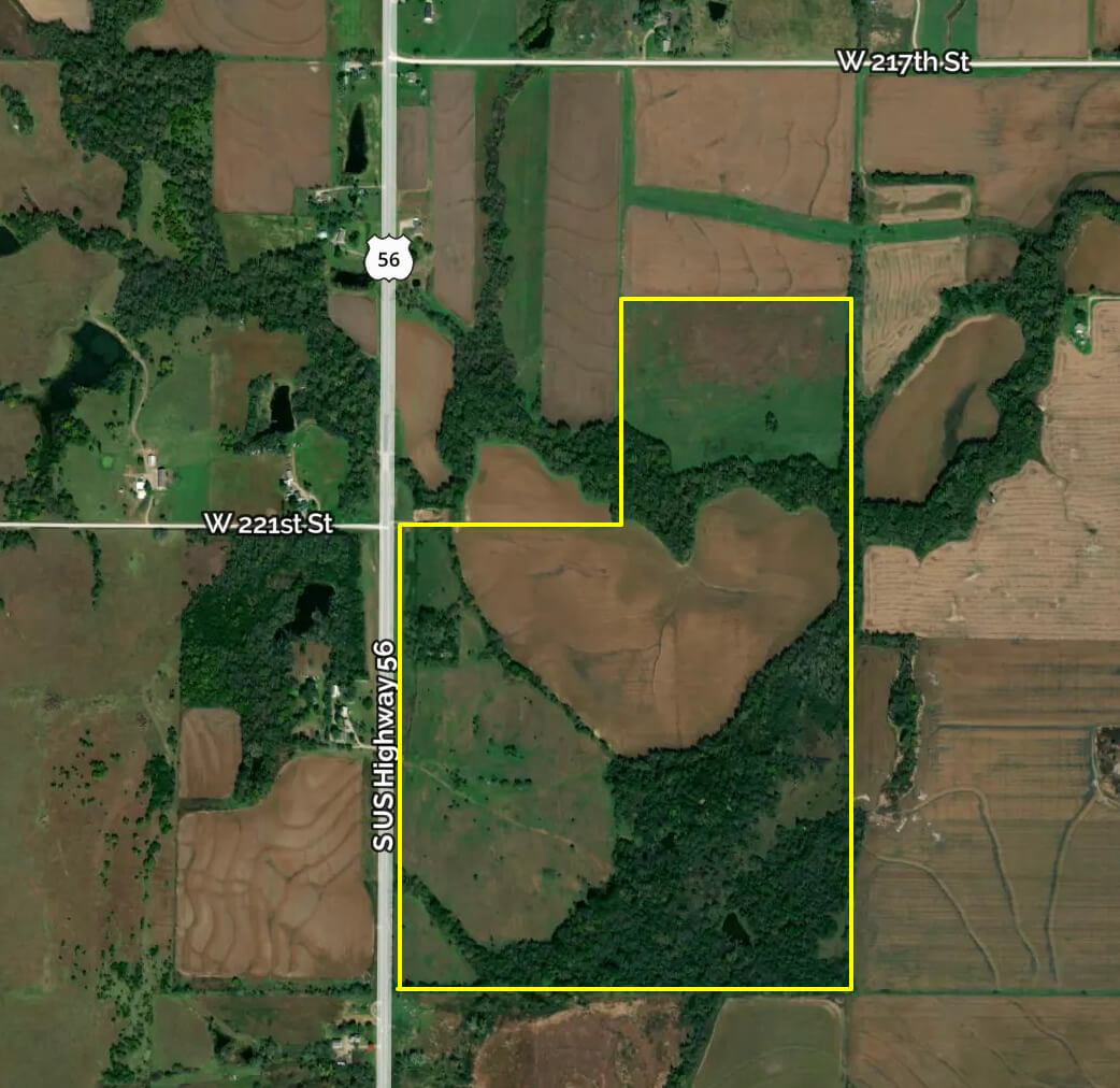 LAND LOCATION: From Osage City, north on HWY 56 (Burlingame Rd) 1 1/2 miles to the property.