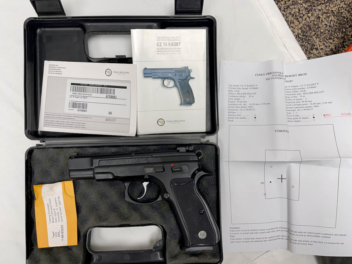 | 12 | CZ 75 Kadet Handgun 22LR Never Fired w/ Hard Case |