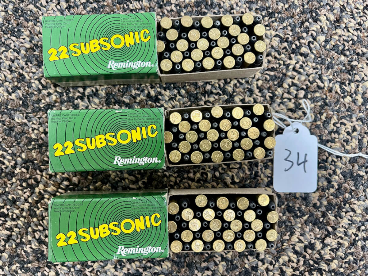 | 34 | (3) Boxes 22 LR Subsonic Ammo – Remington |
