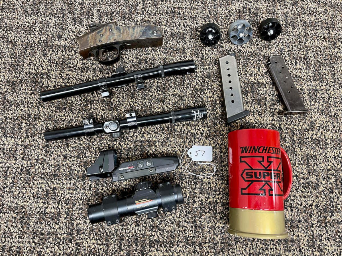 | 57 | Gun Parts – Hunstman Reciever, Scopes, Sights, Magazines |