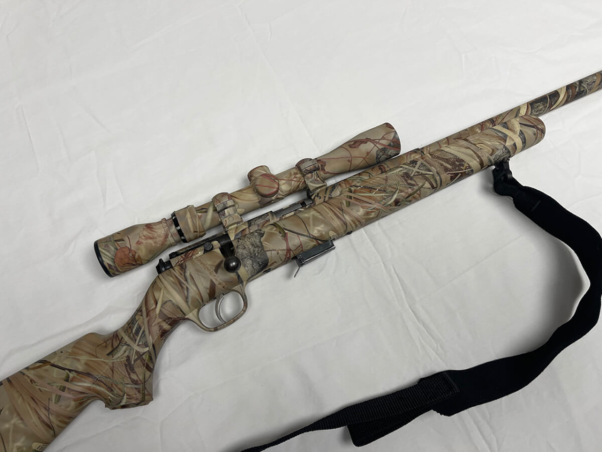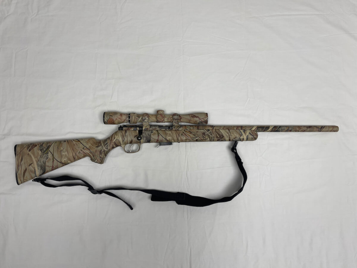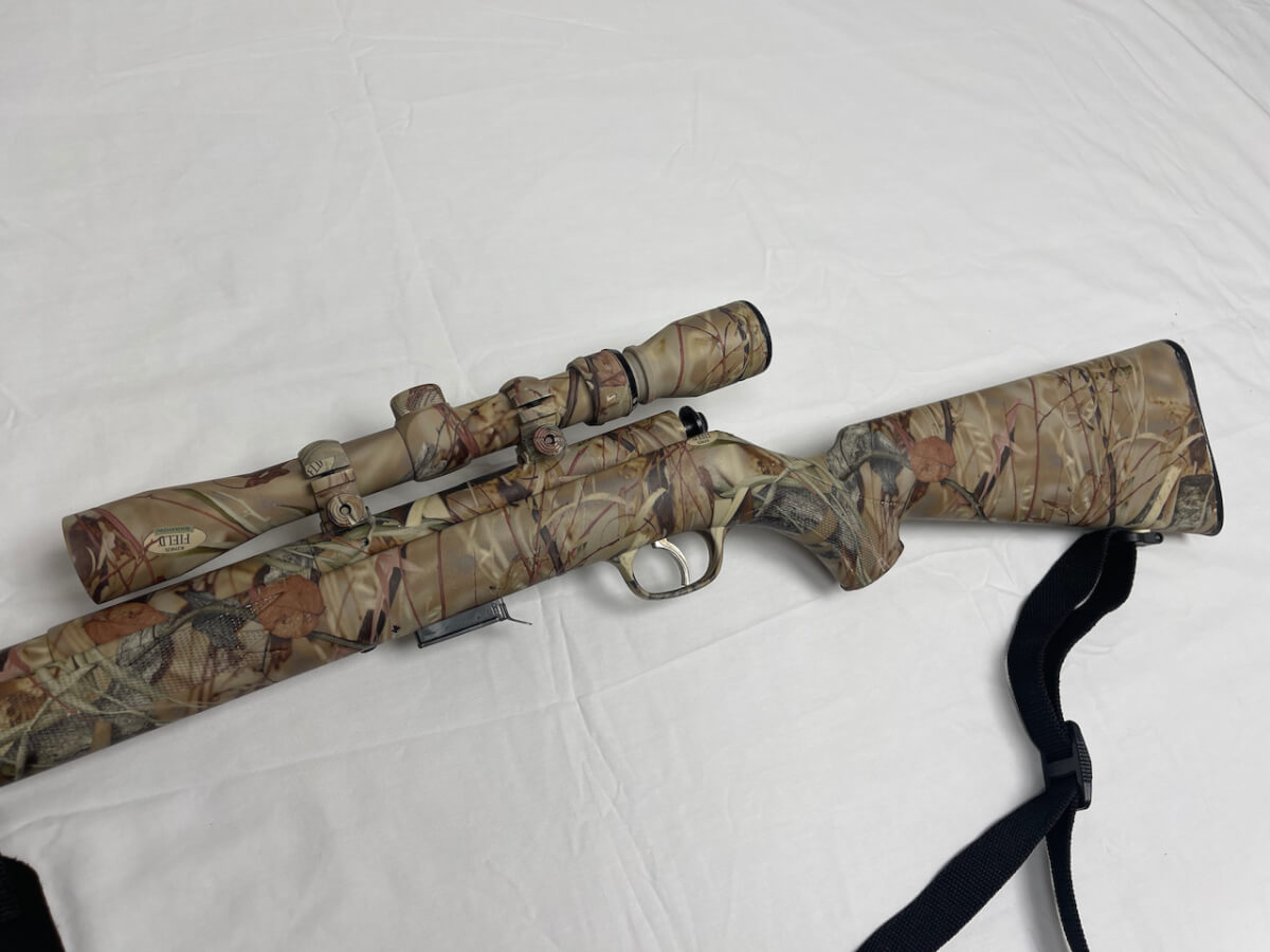 | 5 | Savage Model 93R17 .17 HMR Bolt Action Rifle w/ Scope, gun has been hydrodipped |