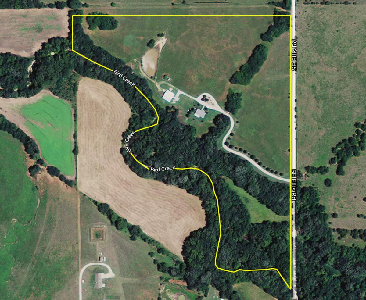 LAND LOCATION: From El Dorado Kansas, 6 miles East on HWY 54 to Ellis Rd, 1/2 mile South to the property.