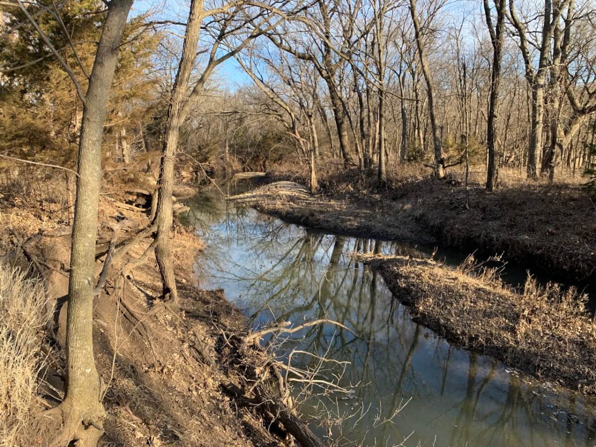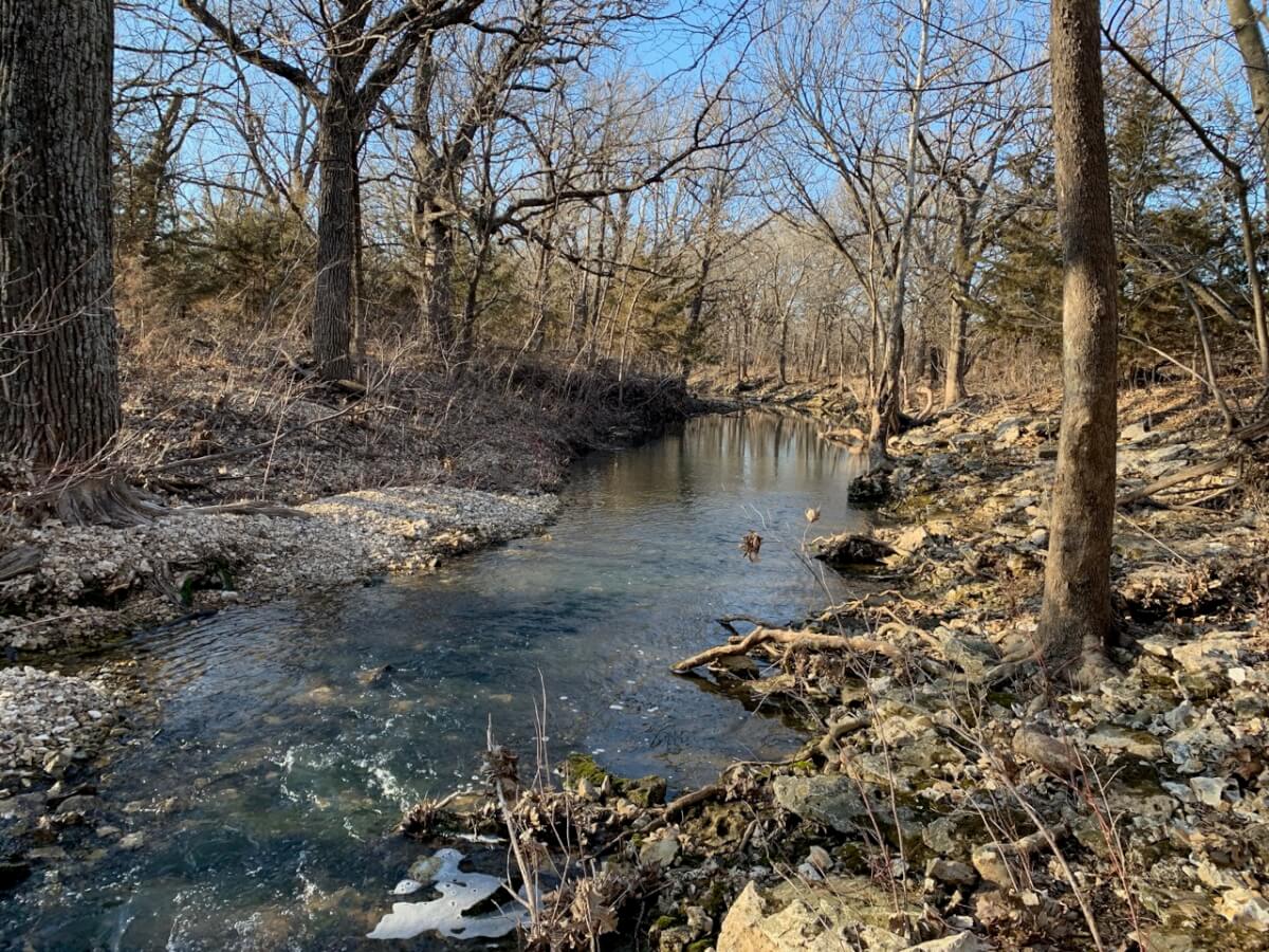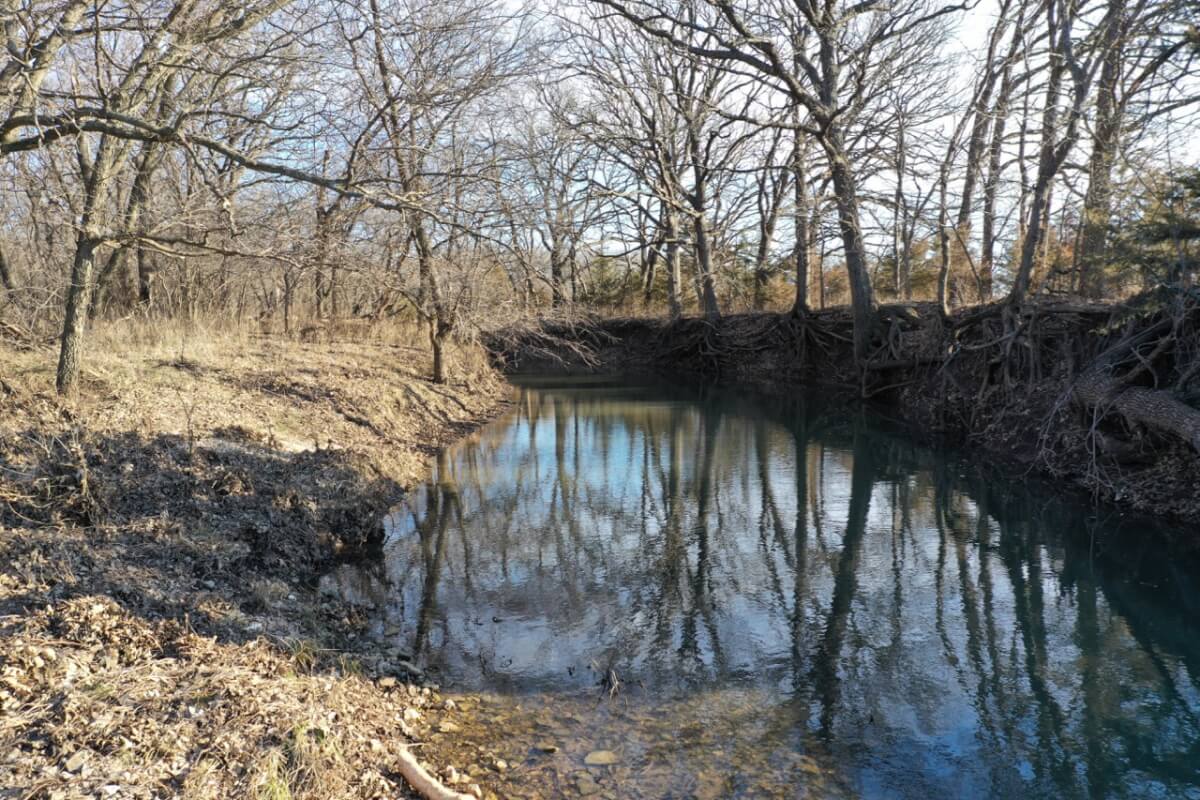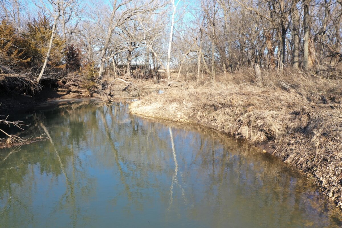 PROPERTY DESCRIPTION: 2 bedroom 2 bath home with full unfinished basement on 29.4 acres east of El Dorado. 1/2 mile of Bird Creek makes up the south boundary of the property. Lined with beautiful, mature trees that include massive Oak Trees among others, this property provides excellent habitat for wildlife of all kinds. Kansas Whitetail Deer and Turkeys are especially common sights on the property. The balance of the land has a pond, native pasture, and an abundance of character.