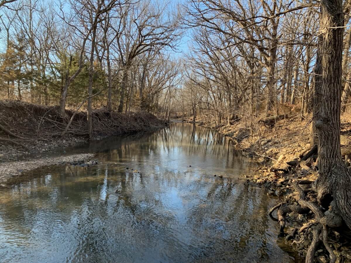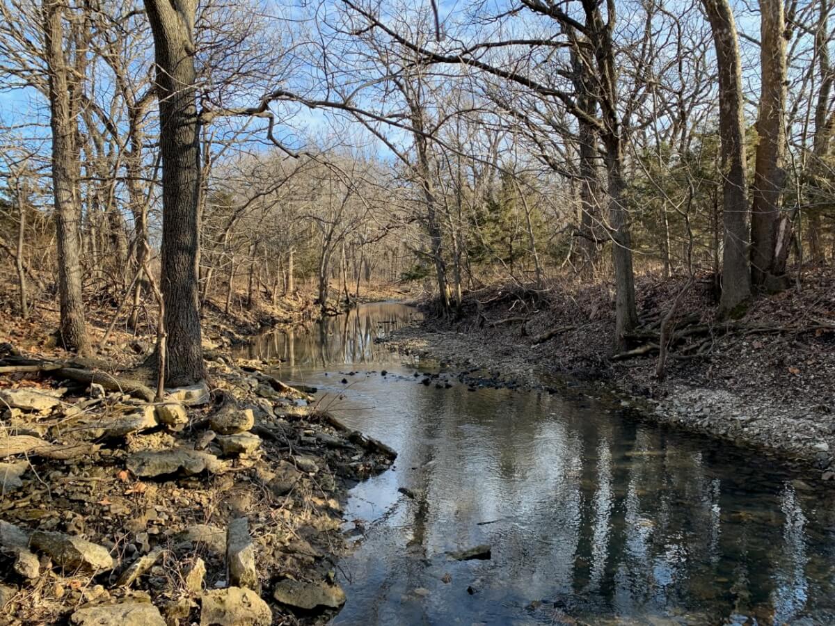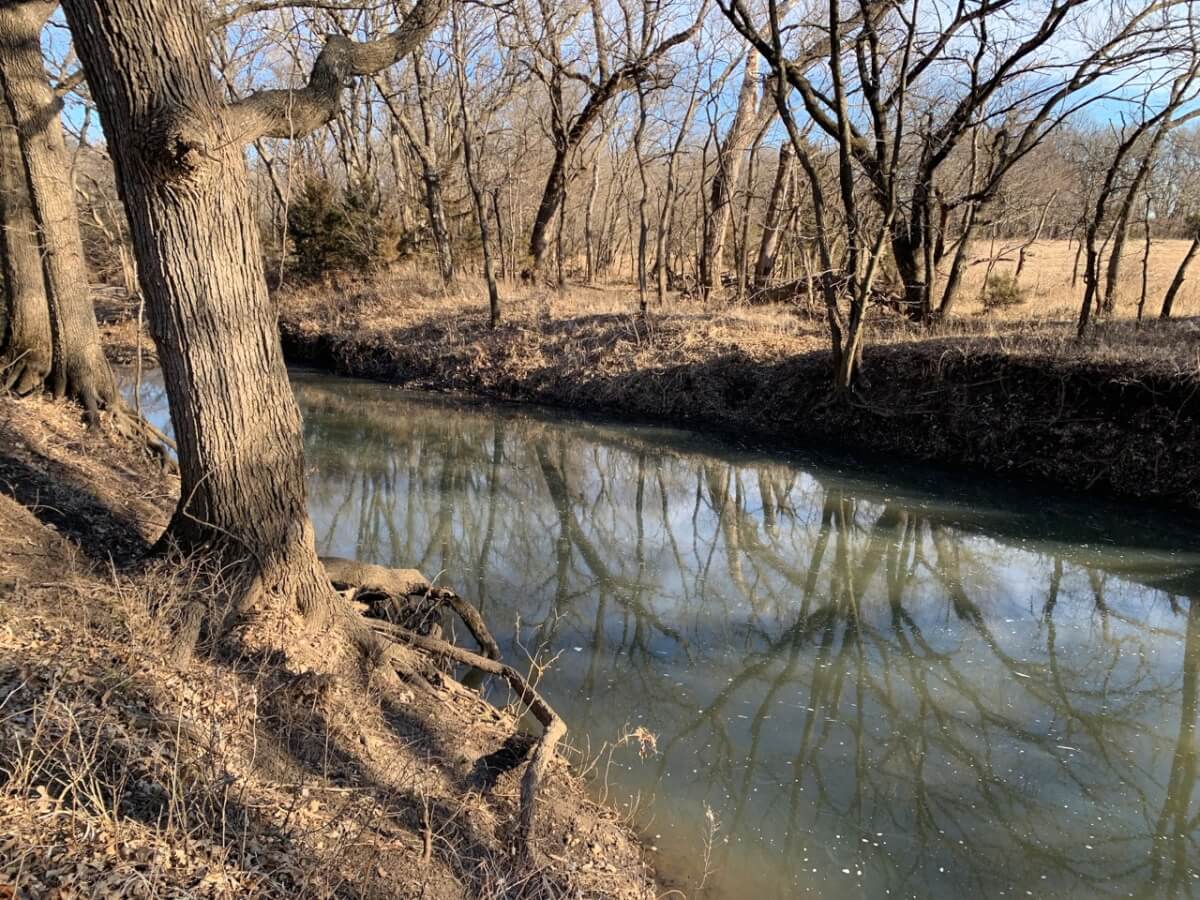 PROPERTY DESCRIPTION: 2 bedroom 2 bath home with full unfinished basement on 29.4 acres east of El Dorado. 1/2 mile of Bird Creek makes up the south boundary of the property. Lined with beautiful, mature trees that include massive Oak Trees among others, this property provides excellent habitat for wildlife of all kinds. Kansas Whitetail Deer and Turkeys are especially common sights on the property. The balance of the land has a pond, native pasture, and an abundance of character.