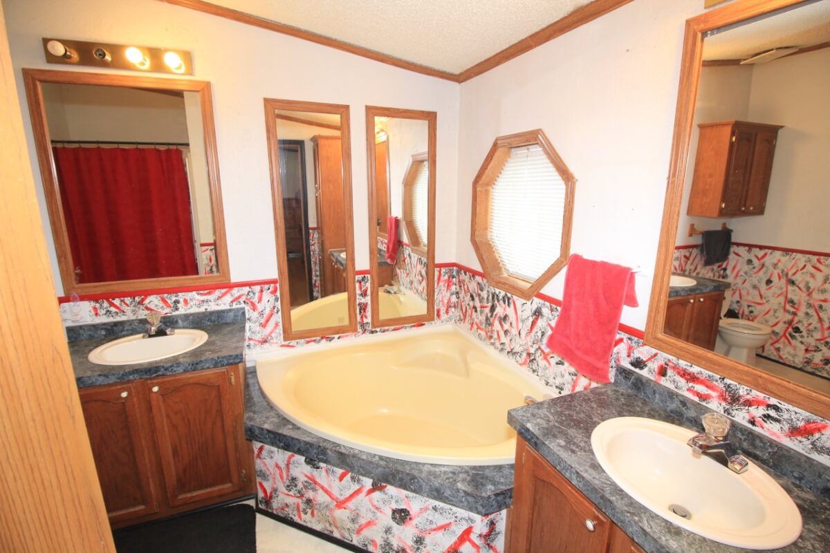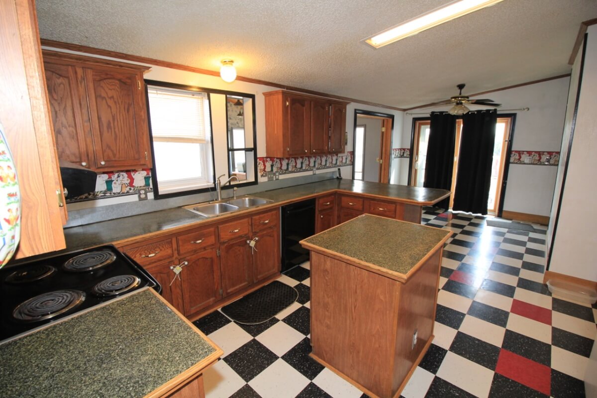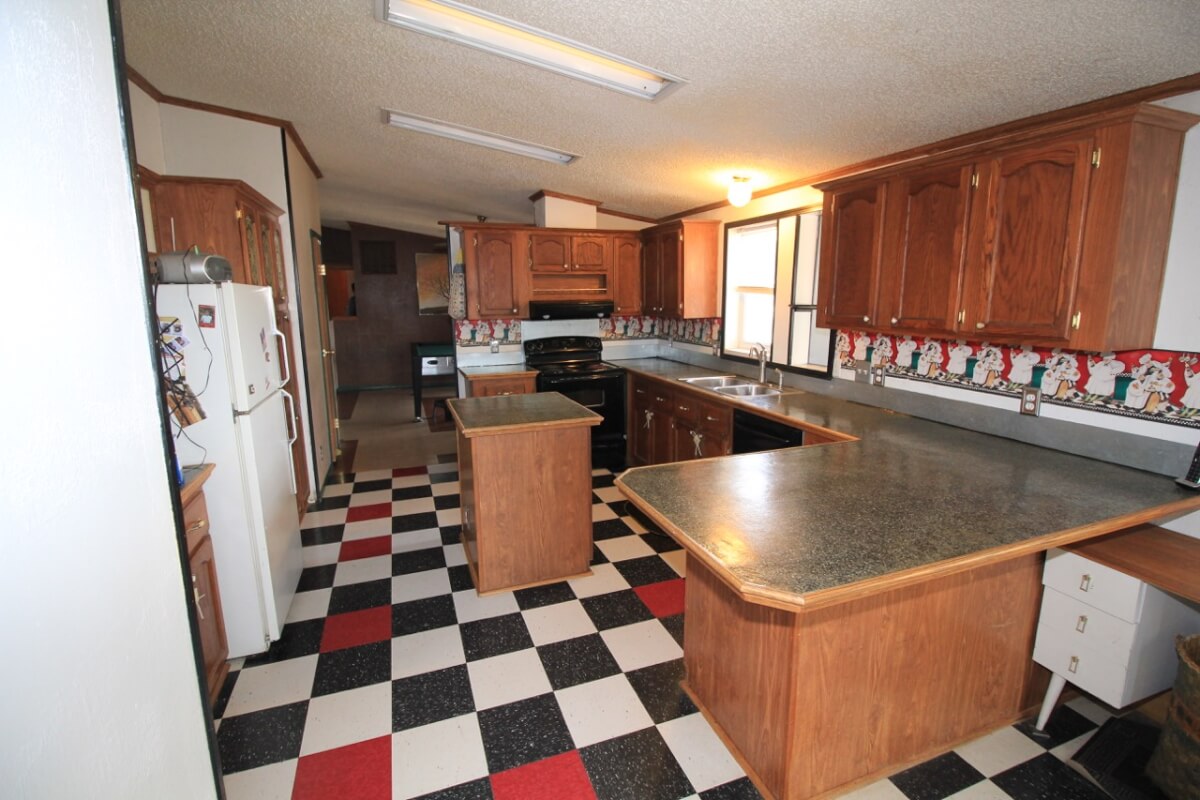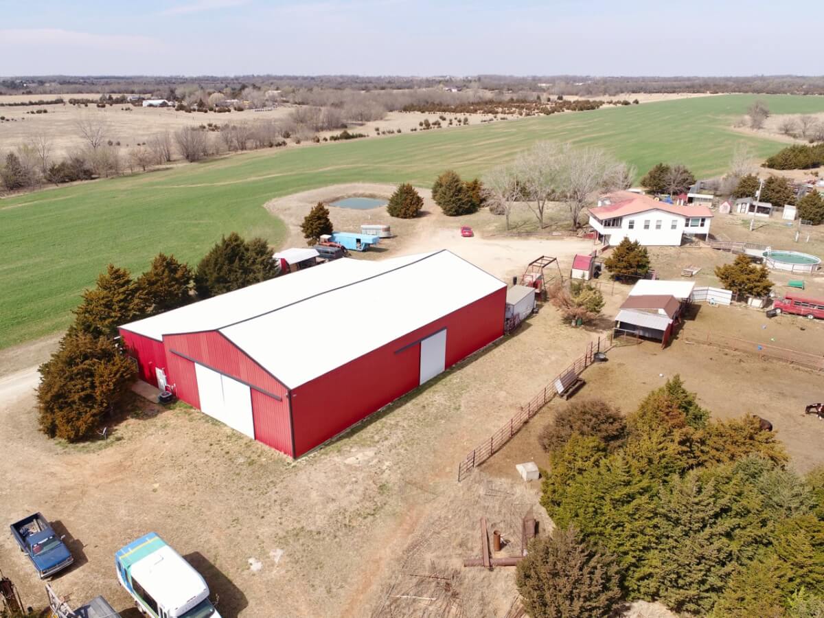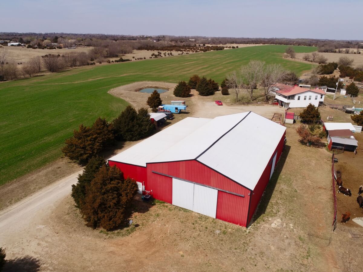 PROPERTY DESCRIPTION: 3+ bedroom 4 bath home on 80 acres near Augusta in Butler County, Kansas. The manufactured home has been increased in size with a stick built addition. The basement has 5 rooms that could be used as bedrooms with ingress/egress windows, 3 of which already have windows. Other portions of the addition include a large office with great natural light, and a guest quarters with kitchen and bathroom that is currently used as a school room. The 96′ x 74′ red metal barn has living quarters, hay storage, and a large open area perfect for events and social gatherings. Other misc. utility building offer good storage and shelter for animals and livestock. A large portion of the property is currently planted to wheat. The balance is pasture, timber, and a pond. This property is taxed as two separate parcels, and once had a second home in the southeast corner. Hunting, recreation, & agriculture are all good current and future uses associated with this property.
