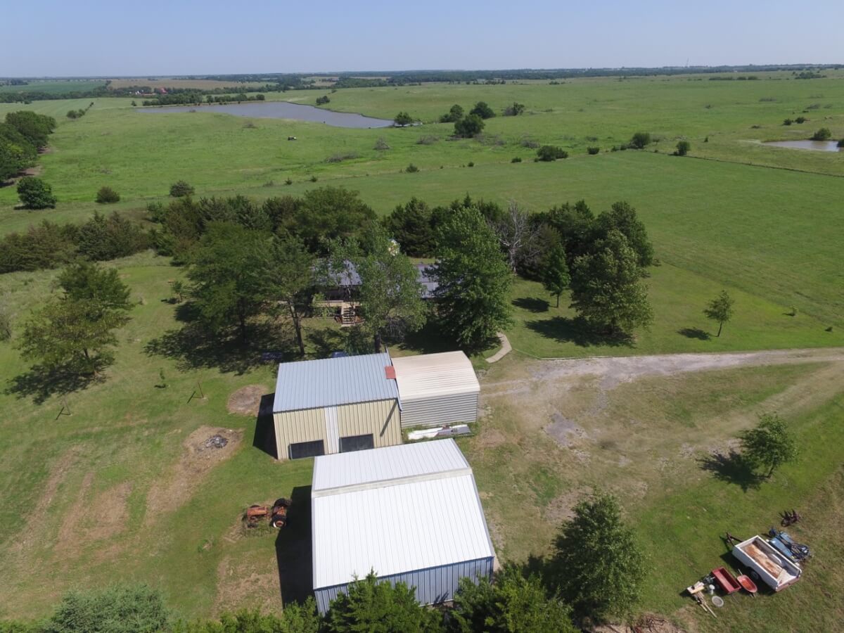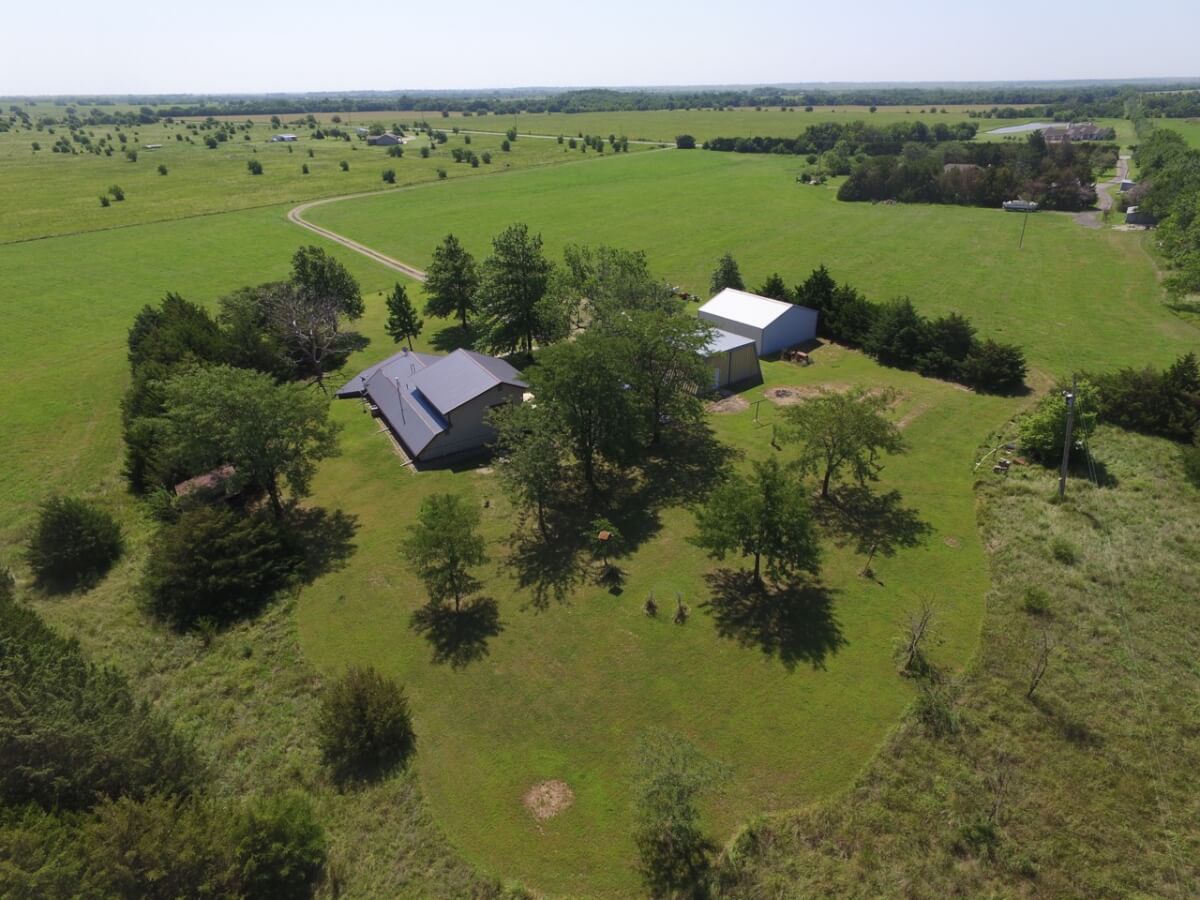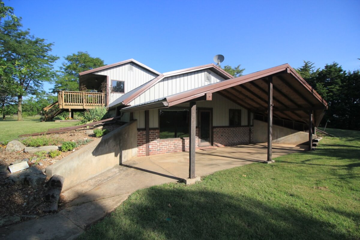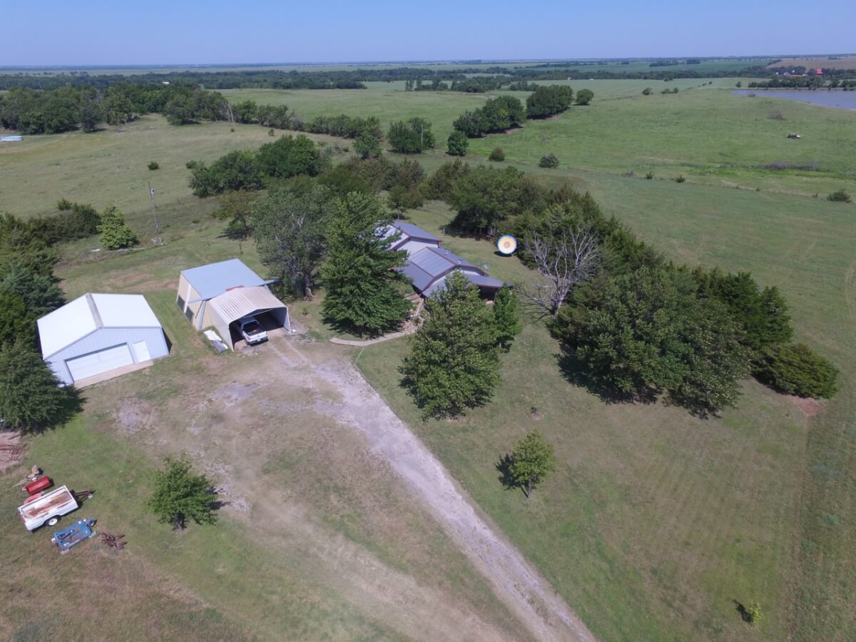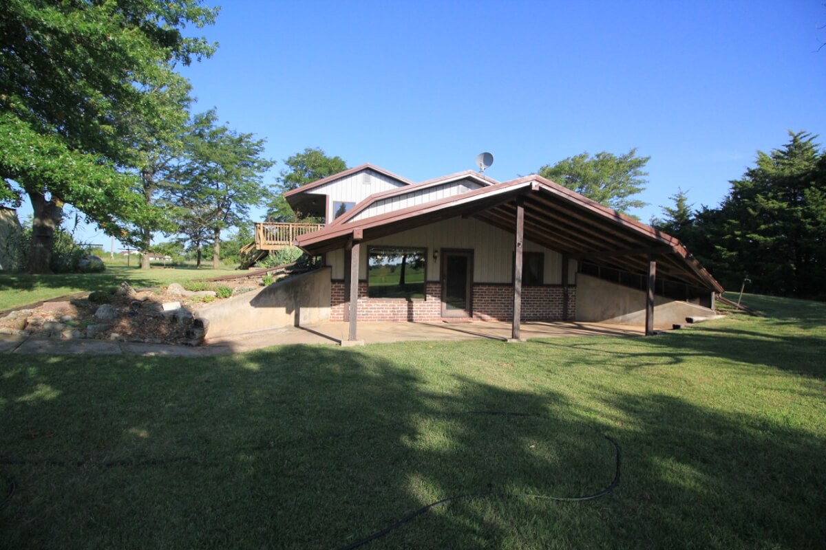 PROPERTY DESCRIPTION: 3 bedroom 2 1/2 bath home on 10.6 acres north of Towanda in Butler County, Kansas. This house contains 1932 square feet of finished living area. The lower level features a large open kitchen, dining area, living room, laundry, storage, 2 bedrooms, and 1 1/2 baths. The entire upper level is a master bedroom and bath with a walkout deck, or if you don’t need a 3rd bedroom it could be used as a large second living room. Exterior amenities include a 26′ x 10′ deck and a 28′ x 14′ covered patio. Buildings on the property include a 30′ x 30′ metal on steel frame, a 30′ x 30′ post frame with metal siding, and a huge carport. Water is provided by rural water district #7 the property has a lagoon. A propane tank will also transfer to the buyer at closing. The beautiful 10.6 acres is native Flint Hills pasture currently used as hay meadow. There are several trees on the property, including numerous Pin Oaks, Gum, Mimosa, Cottonwood, Honey Locust, and Cedars. The view to the north over open rolling terrain is beautiful! All of these hard to find rural features PLUS blacktop frontage!