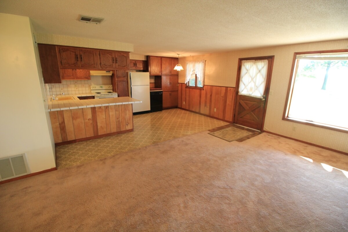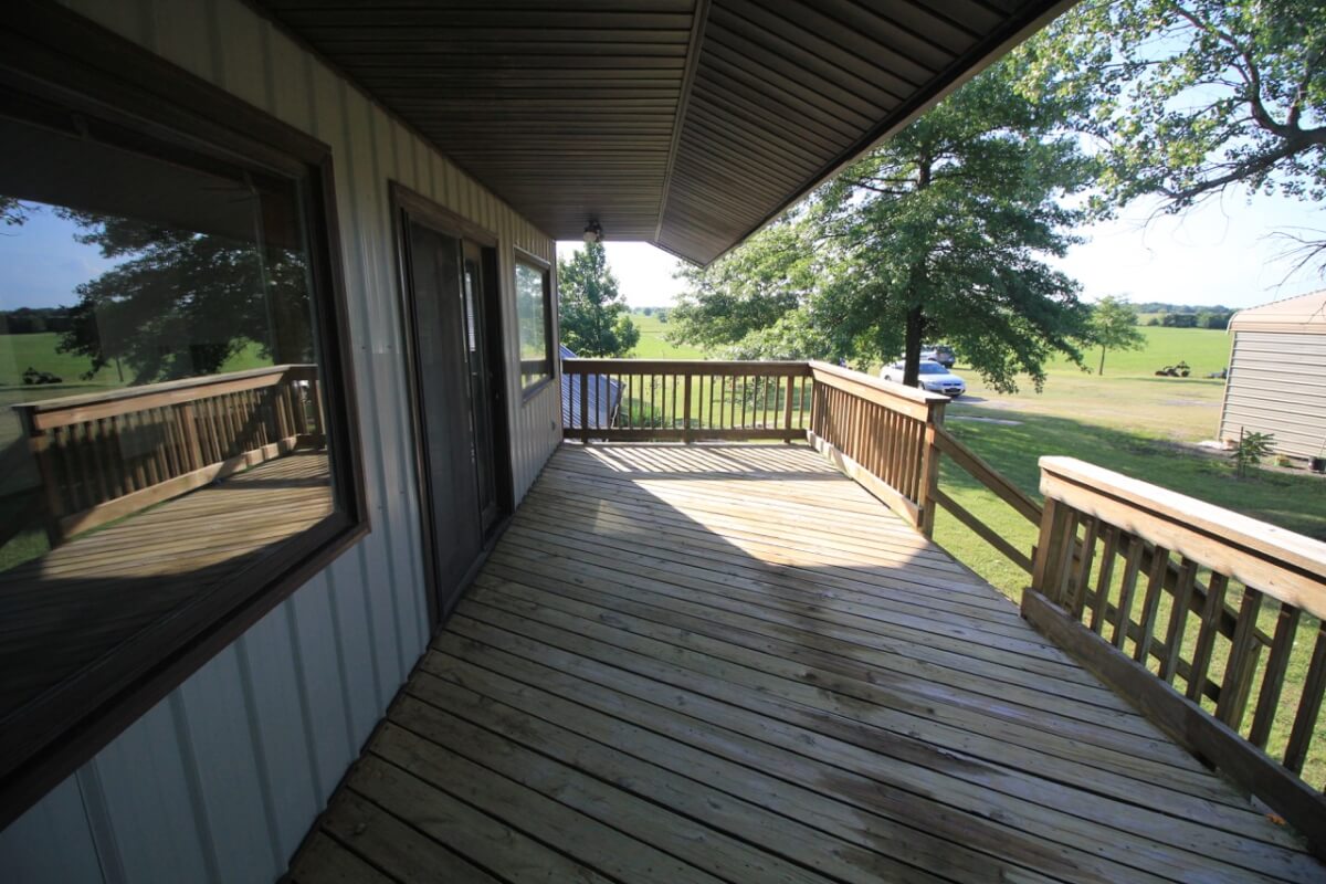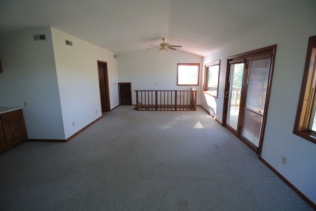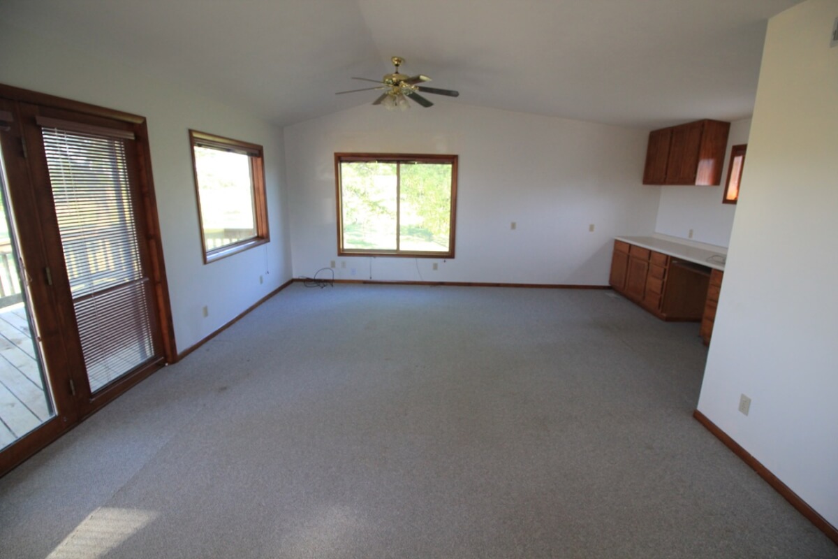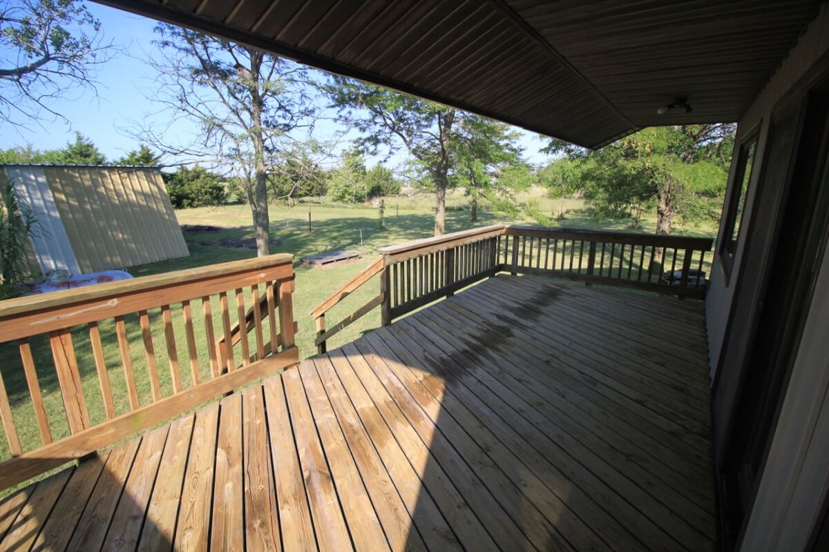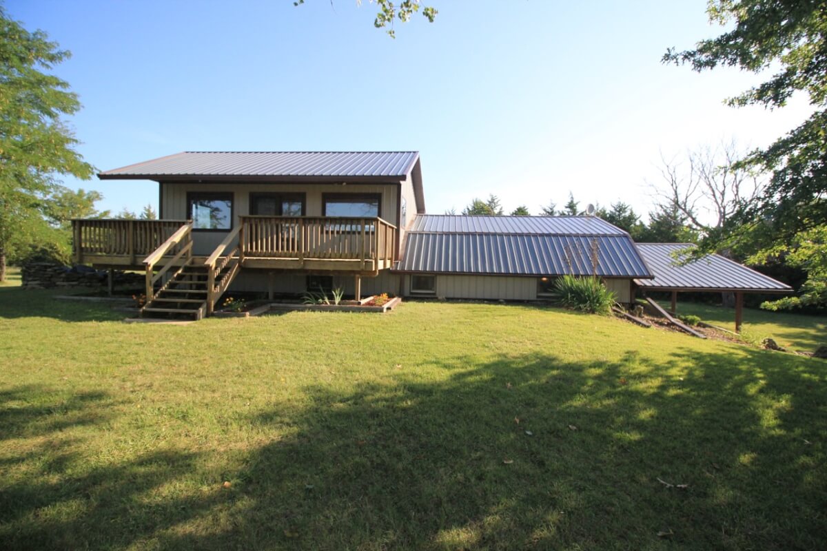 PROPERTY DESCRIPTION: 3 bedroom 2 1/2 bath home on 10.6 acres north of Towanda in Butler County, Kansas. This house contains 1932 square feet of finished living area. The lower level features a large open kitchen, dining area, living room, laundry, storage, 2 bedrooms, and 1 1/2 baths. The entire upper level is a master bedroom and bath with a walkout deck, or if you don’t need a 3rd bedroom it could be used as a large second living room. Exterior amenities include a 26′ x 10′ deck and a 28′ x 14′ covered patio. Buildings on the property include a 30′ x 30′ metal on steel frame, a 30′ x 30′ post frame with metal siding, and a huge carport. Water is provided by rural water district #7 the property has a lagoon. A propane tank will also transfer to the buyer at closing. The beautiful 10.6 acres is native Flint Hills pasture currently used as hay meadow. There are several trees on the property, including numerous Pin Oaks, Gum, Mimosa, Cottonwood, Honey Locust, and Cedars. The view to the north over open rolling terrain is beautiful! All of these hard to find rural features PLUS blacktop frontage!
