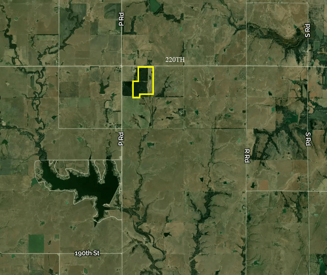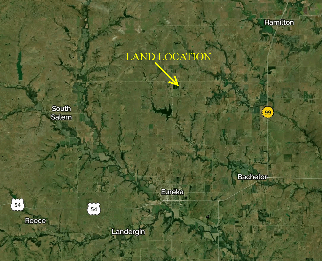 LAND LOCATION: From Eureka, north on P Rd (State St.) 7 miles, east on 220th 1/4 mile to the property.