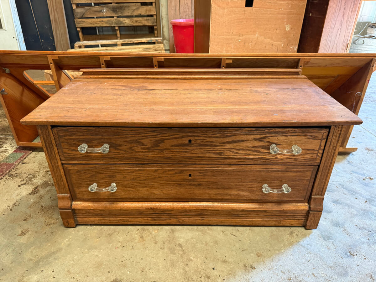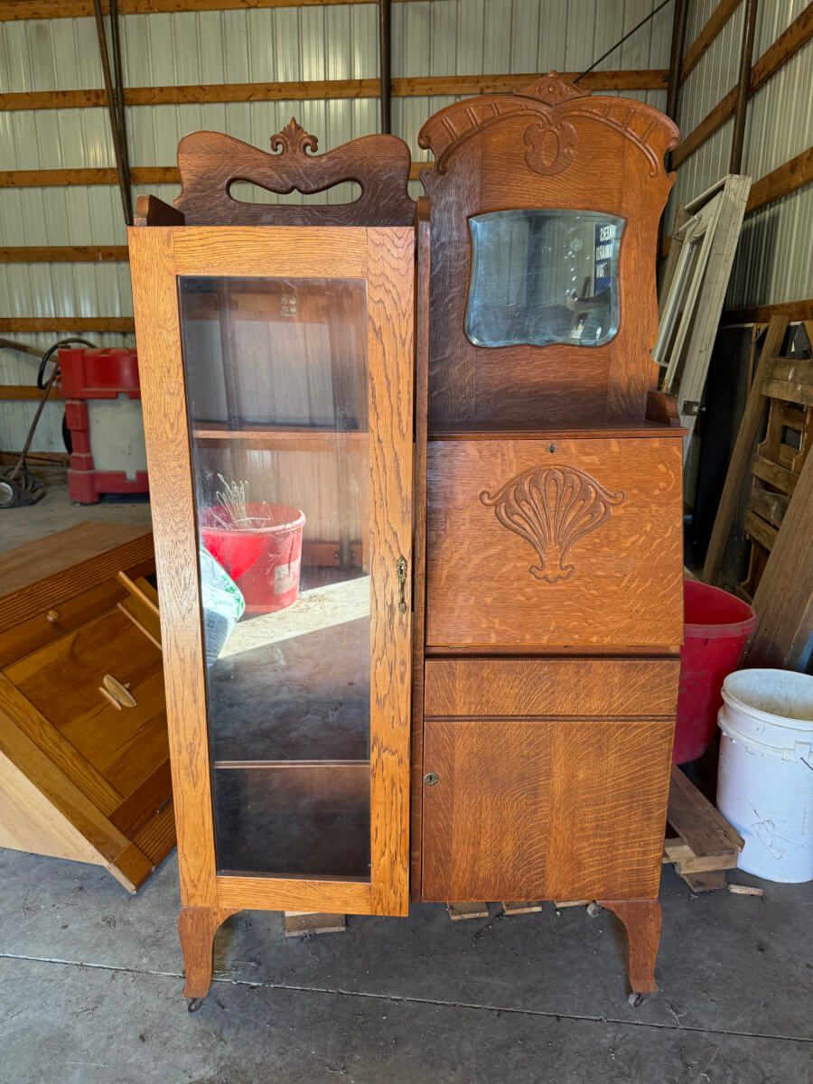 | 62 | Oak Ornate Beveled Mirror Secretary Cabinet |