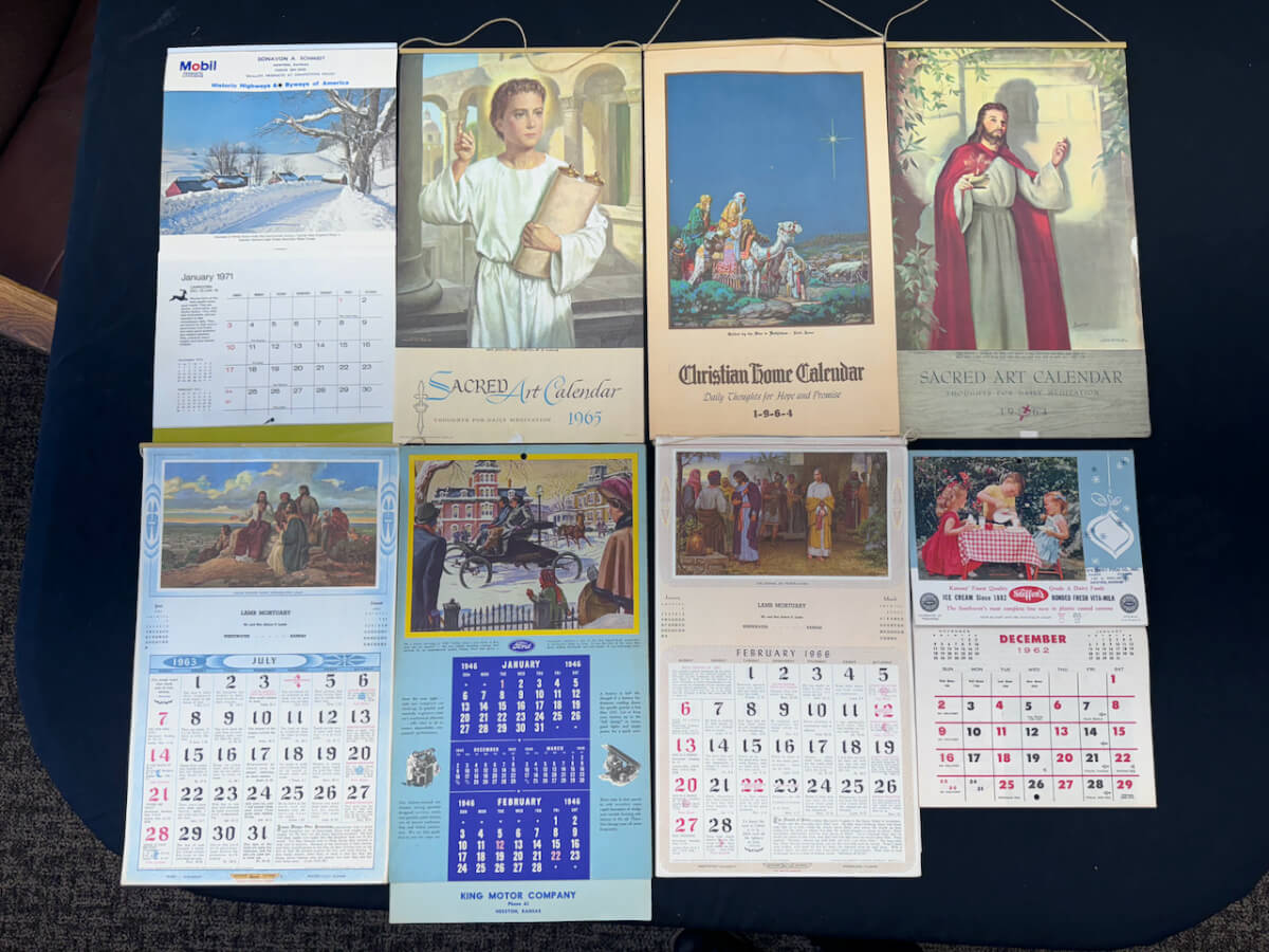 | 97 | (8) Calendars; Mobil, Sacred Art, Christian Home, Steffens, Lamb Mortuary, Ford |