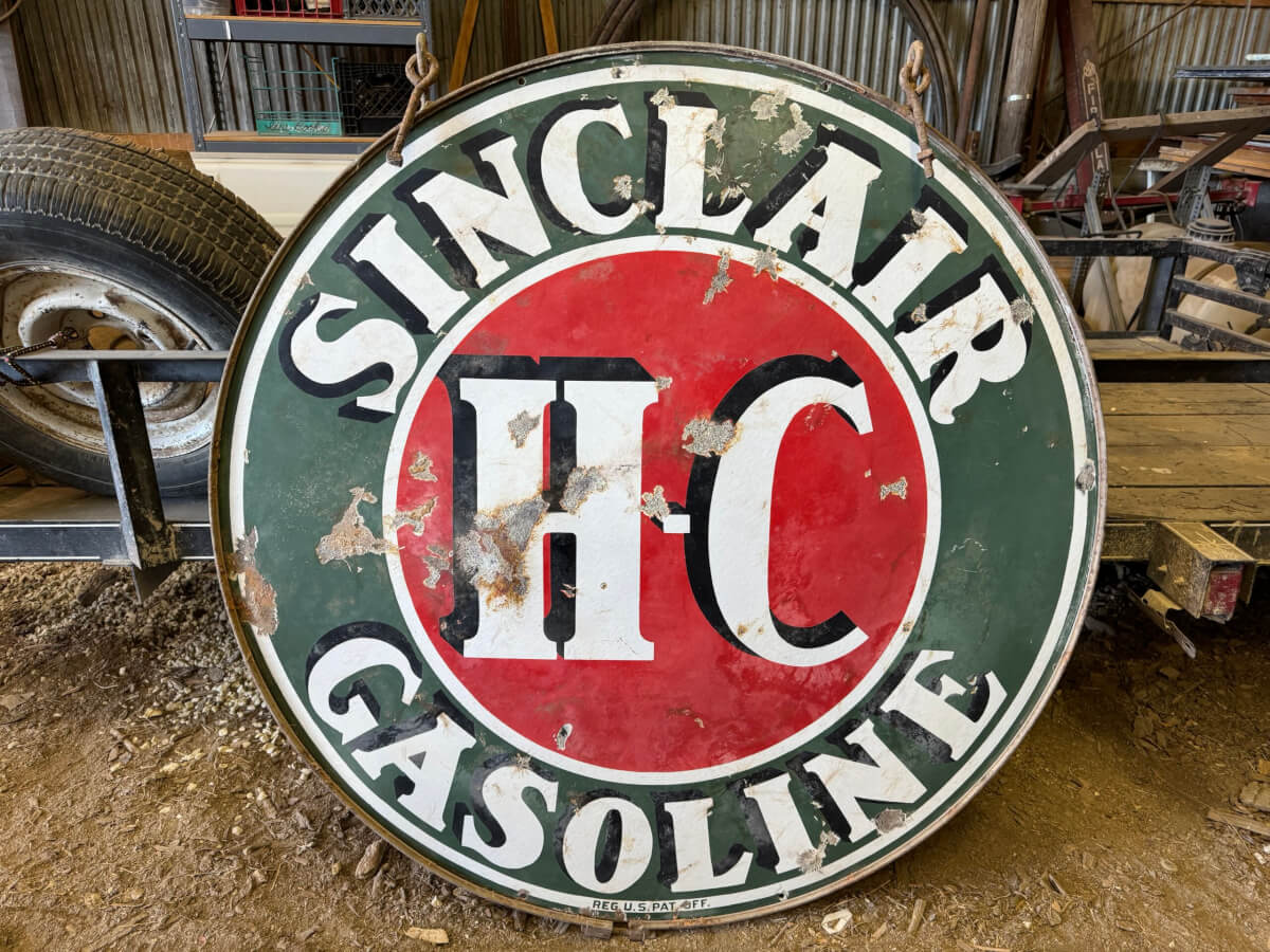 | 100o | H-C Sinclair Gasoline 2-Sided Porcelain Sign with Metal Ring 48″ Diameter |