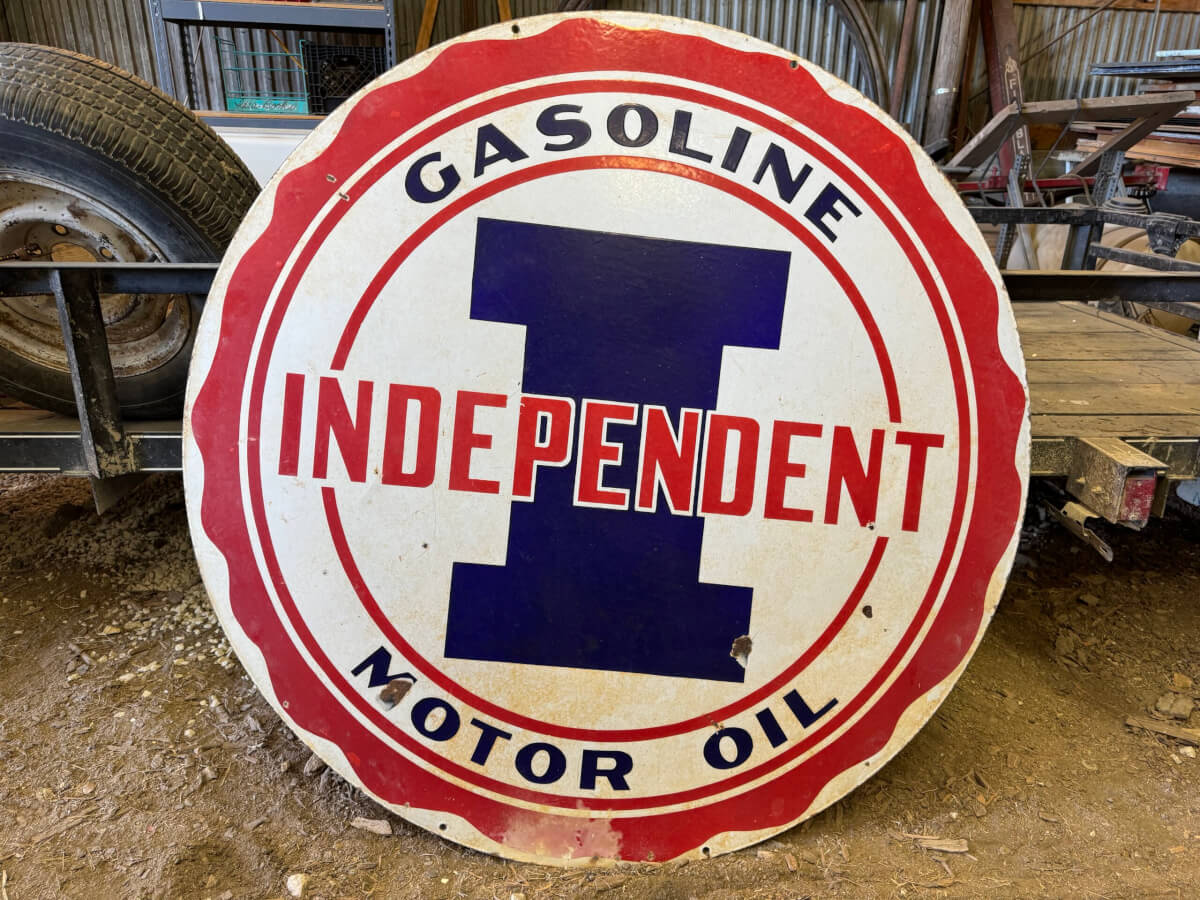 | 100p | Independent Gasoline & Motor Oil 2-Sided Porcelain Sign 48″ Diameter |