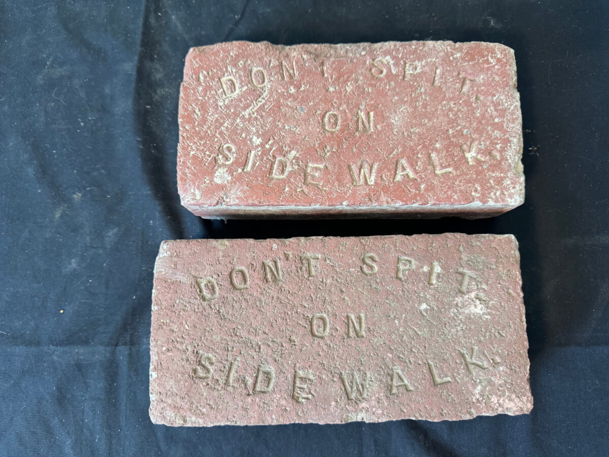 | 120 | Pair of Bricks “Don’t Spit on Sidewalk” |