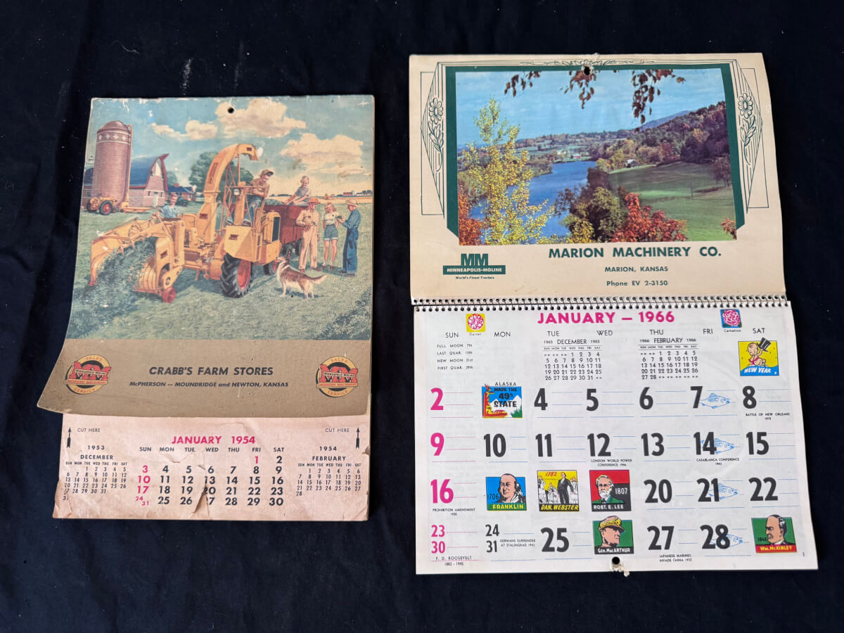 | 15 | (2) Minneapolis Moline Calendars: Marion Machinery & Crabs Farm Stores |